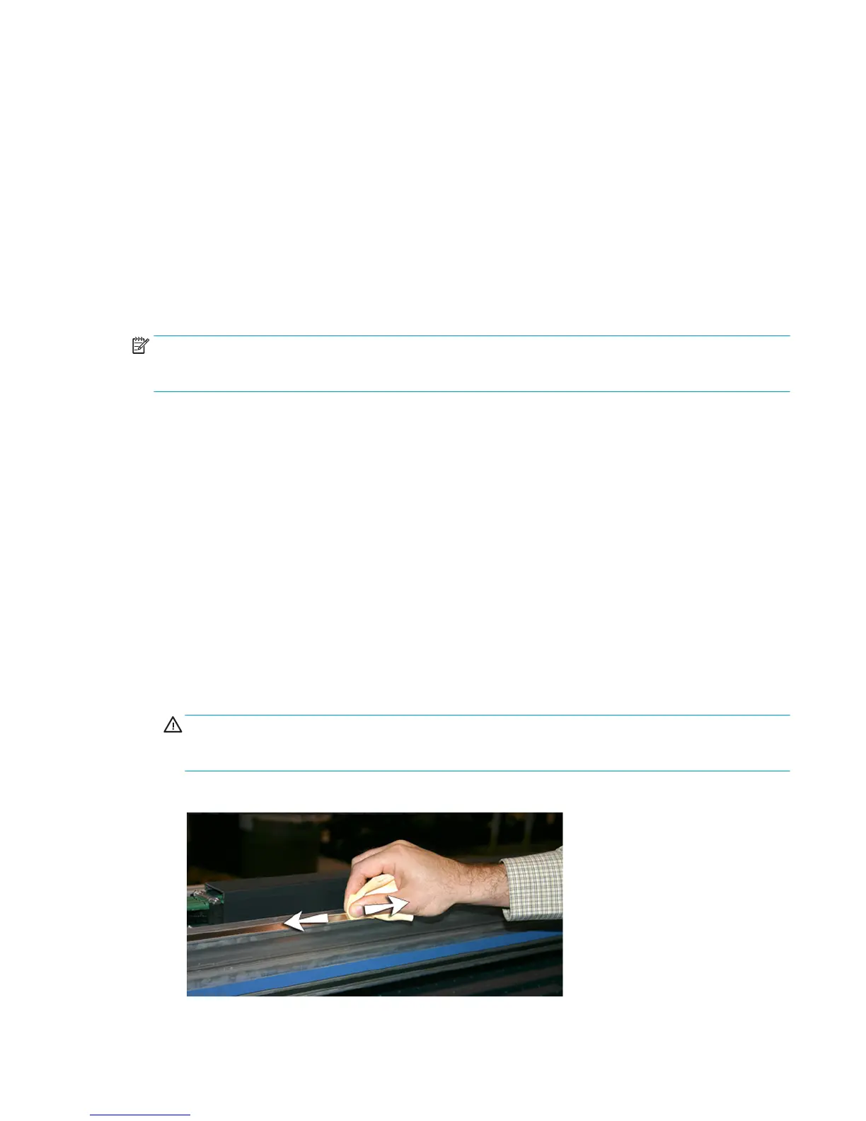 4. Using a lint-free cloth and isopropyl alcohol, clean the top carriage-wheel strip from end to end on the