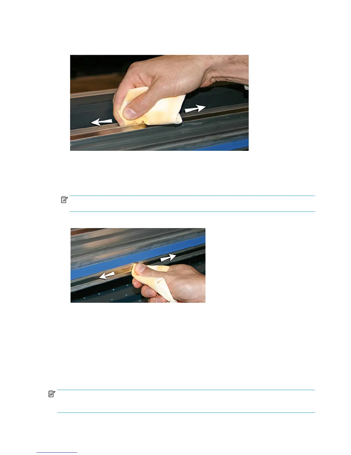 the rail (moving the carriage by hand to clean the full length of the rail).