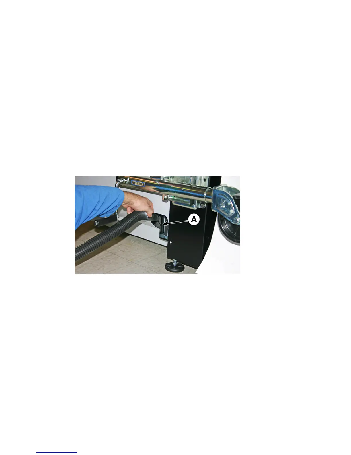 If the chassis wheels are still attached to the printer, rotate the wheel out of the way as shown below.