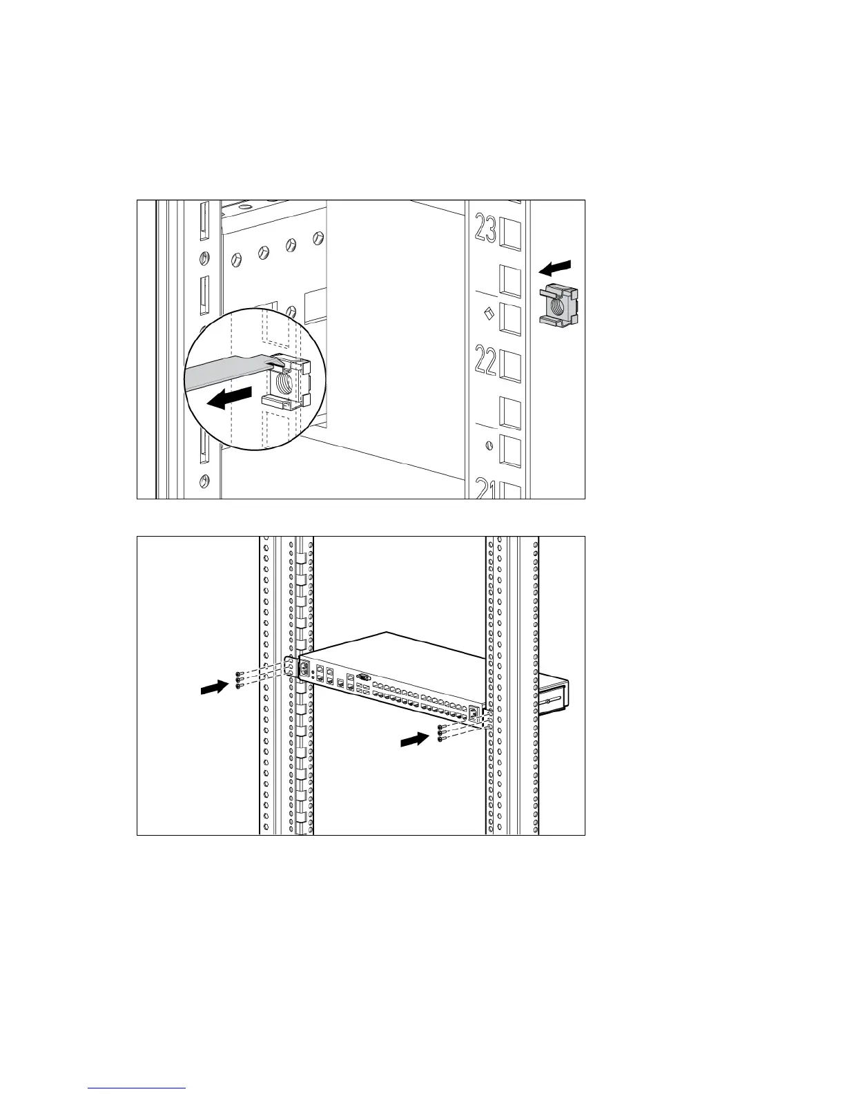 4. Secure the console switch to the rails using the appropriate number of M-6 screws.