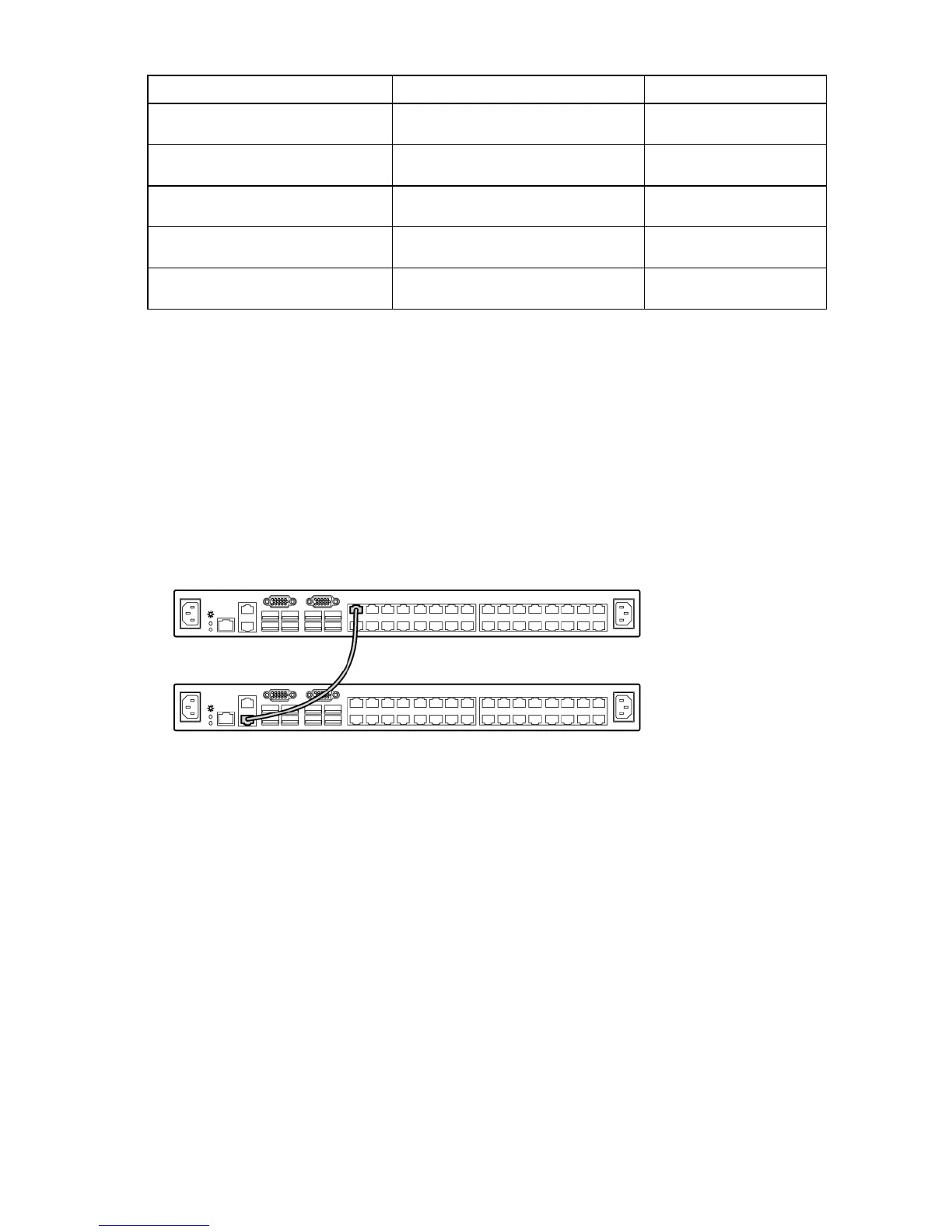 The following figure shows two HP Server Console Switches G2 cascaded together. The top console switch