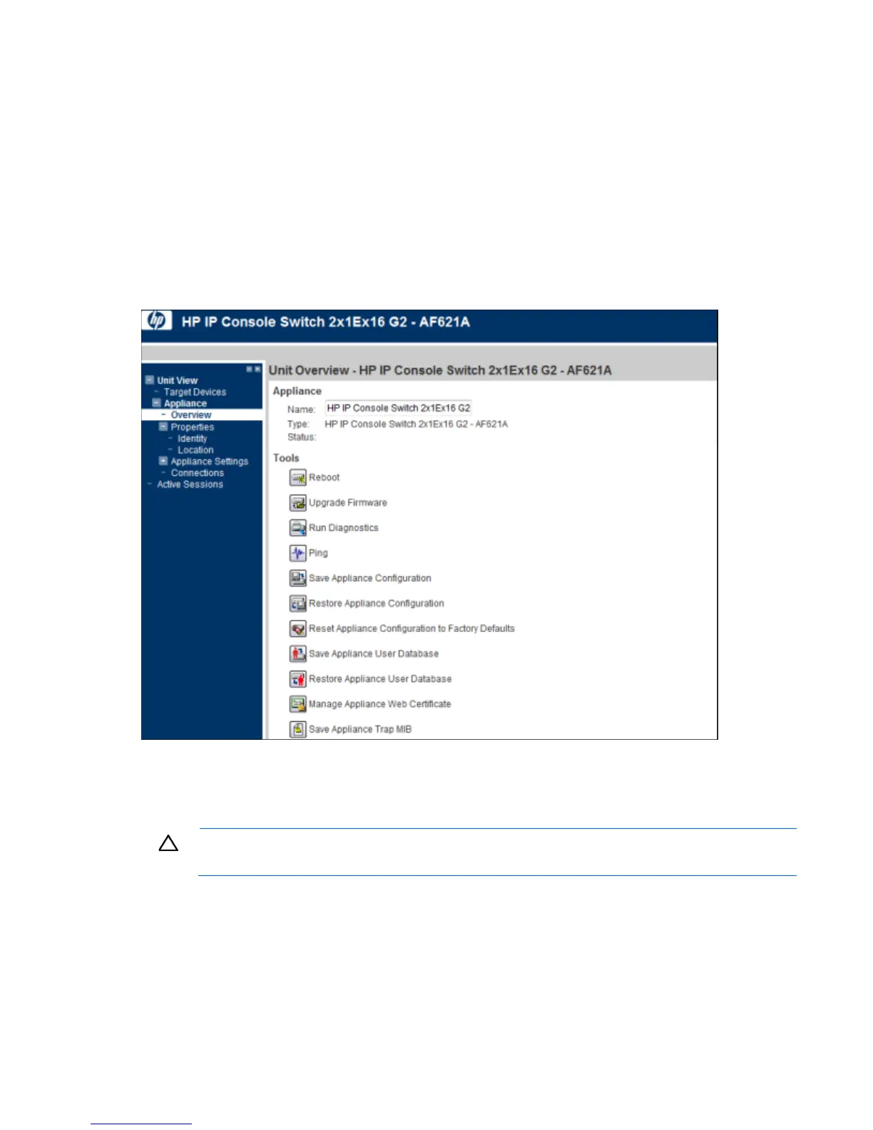 1. Select Unit View>Appliance>Overview. The Unit Overview page appears.