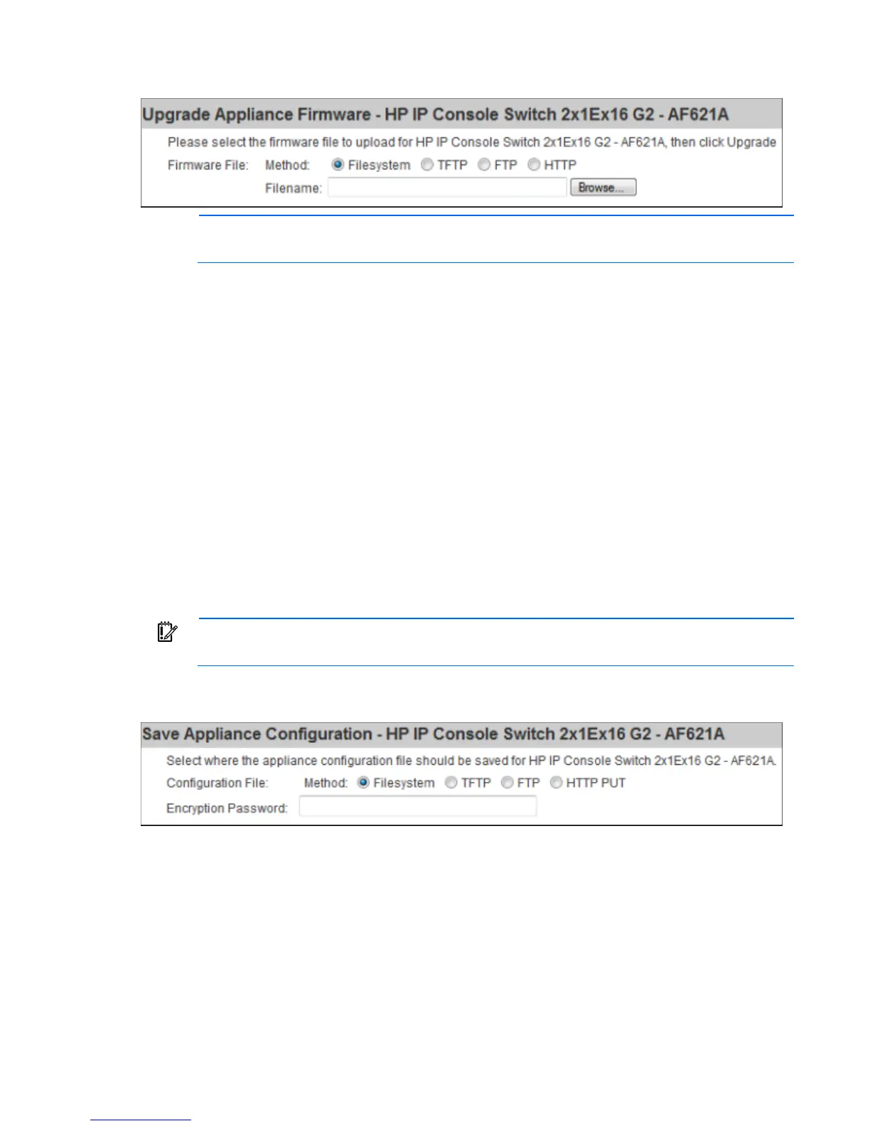o Filesystem—Select Browse to specify the location of the firmware upgrade file.