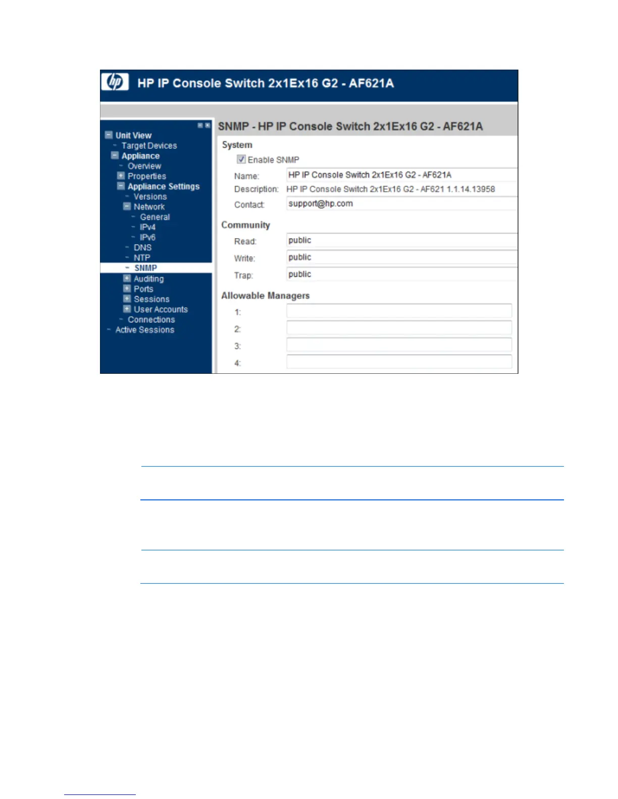 Select Unit View>Appliance>Appliance Settings>SNMP. The SNMP page appears.