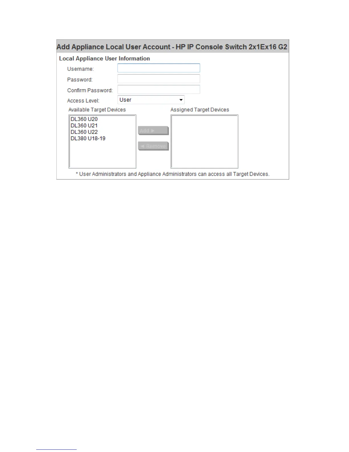 4. Highlight all available target devices the user is assigned to, and then select Add.