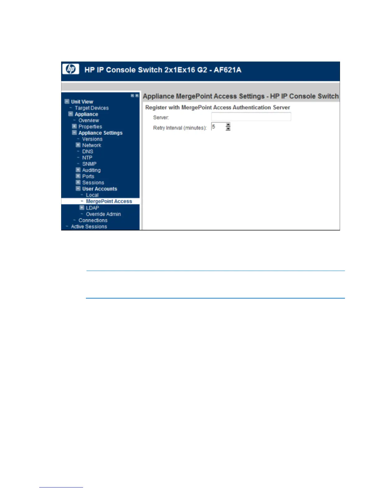 1. Select Unit View>Appliance>Appliance Settings>User Accounts>MergePoint Access. The Appliance