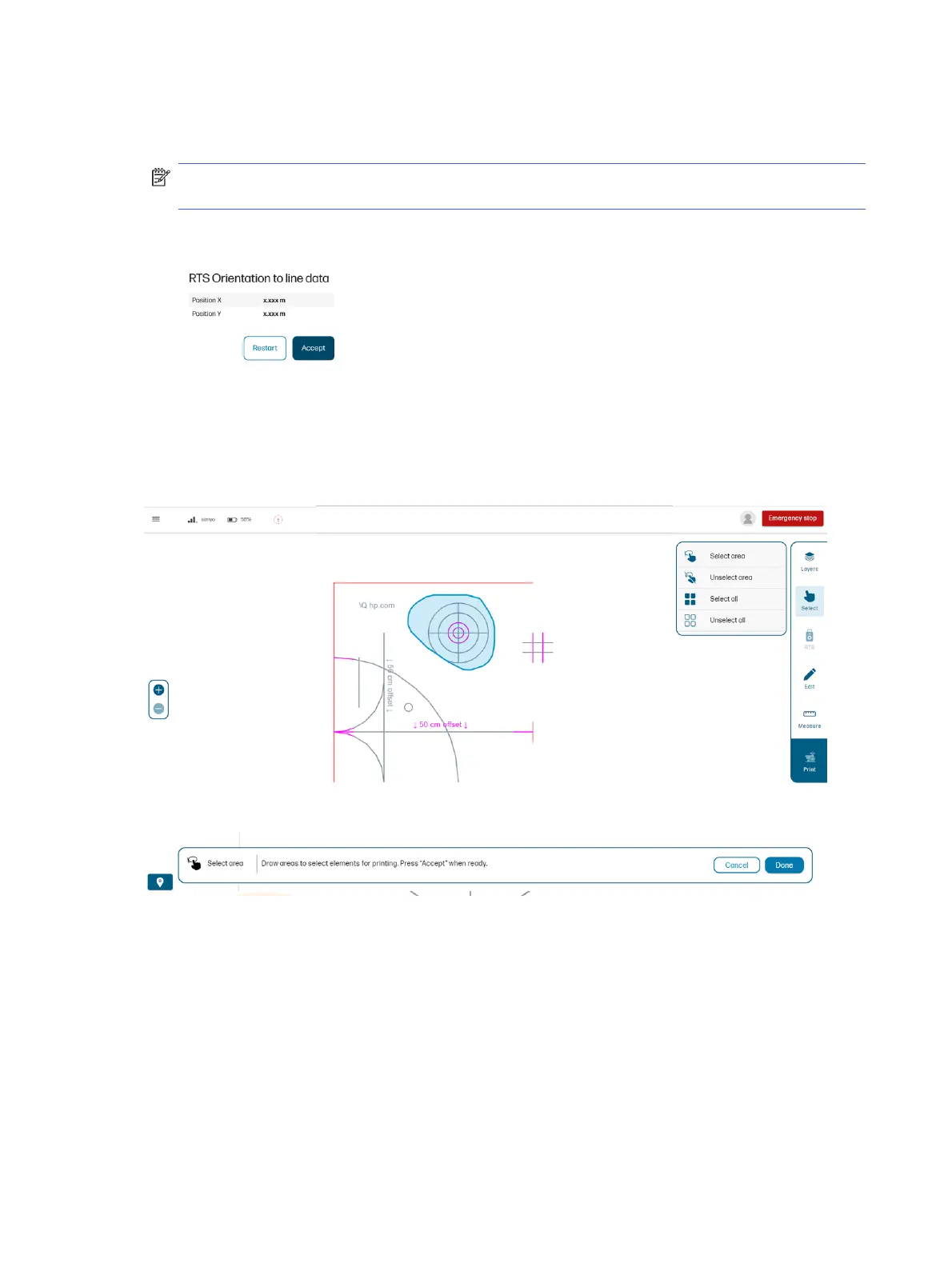 6. The RTS position after orienting to a line is displayed. Tap Accept to end the process.