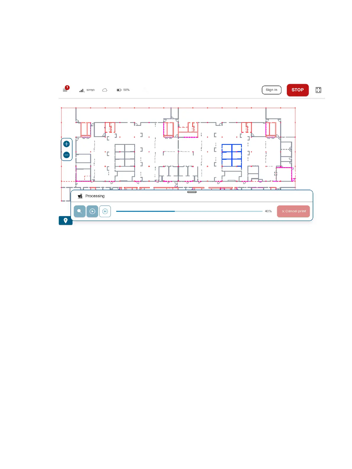 ● Pink lines show anything that has failed to print because an obstacle is too close.