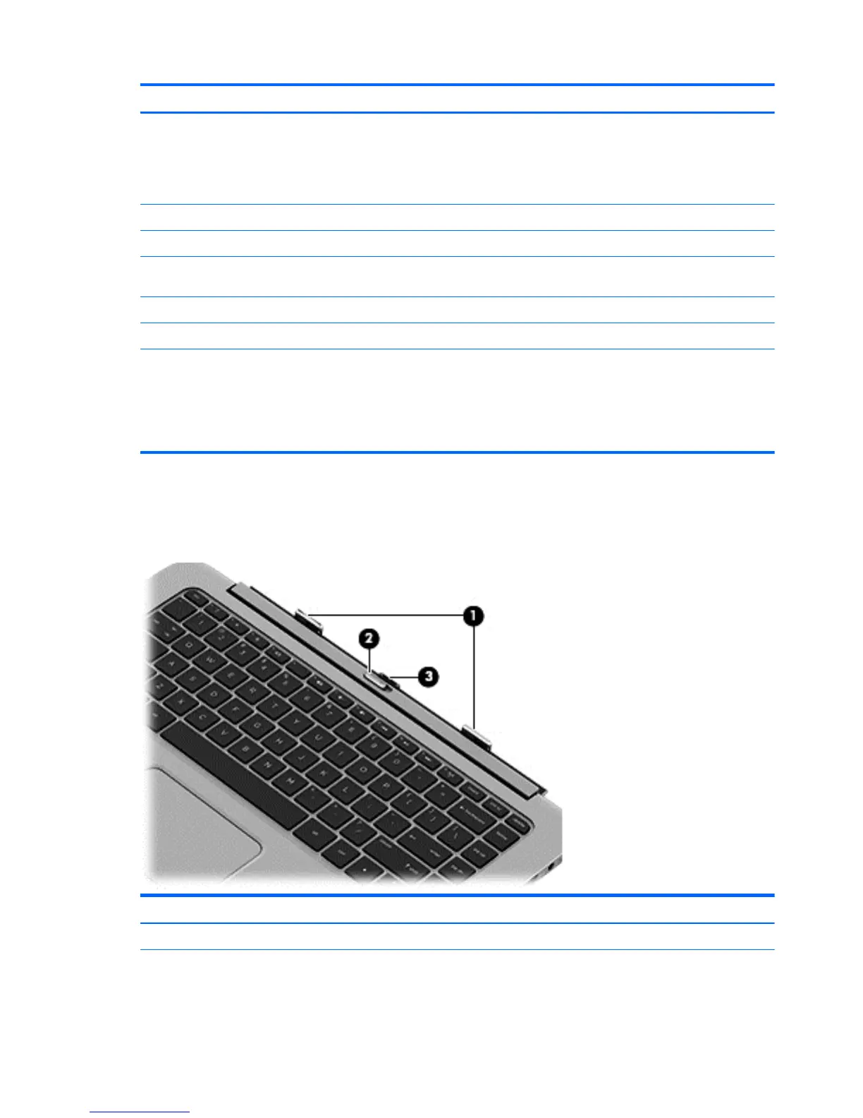 (5) Docking port/power connector Connects the tablet to the keyboard base and connects an AC