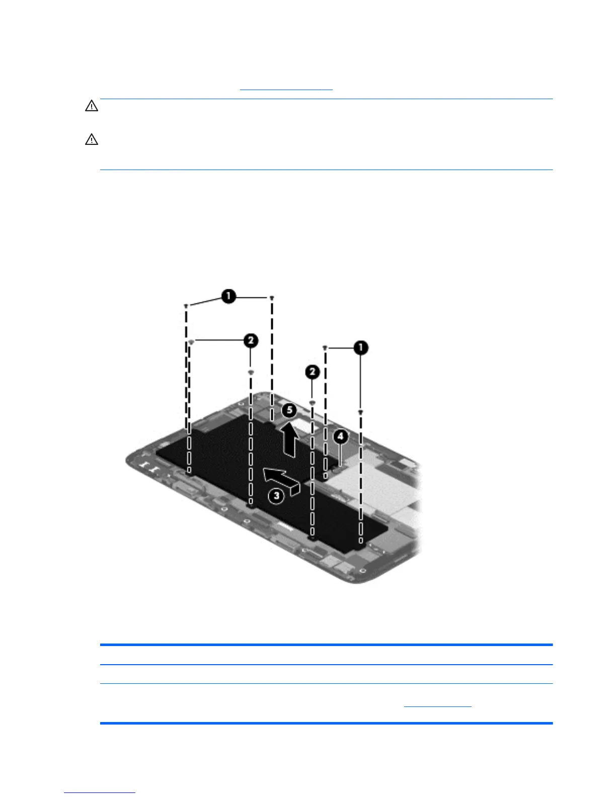 CAUTION: Removing a battery that is the sole power source for the tablet can cause loss of information. To
