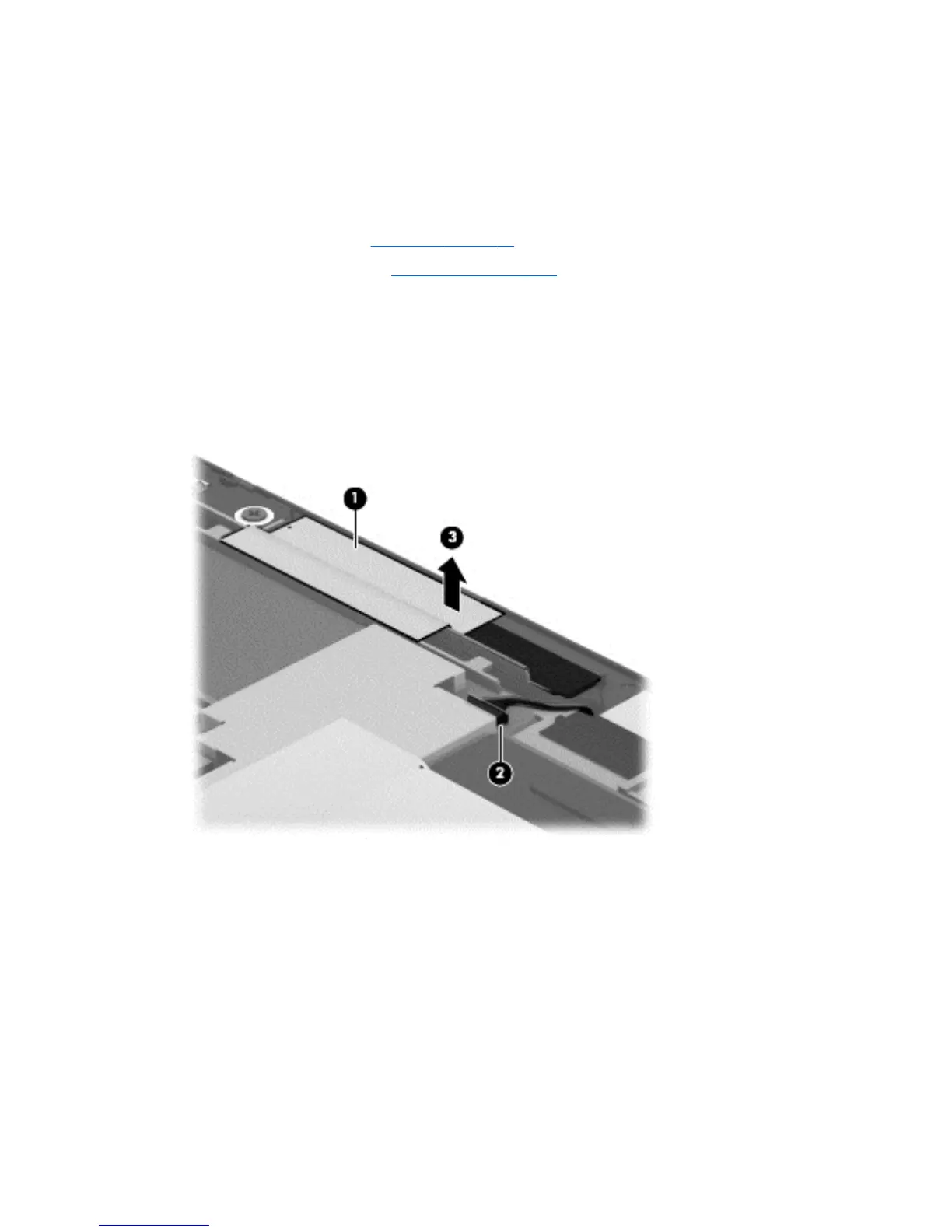 1. Detach the grounding tape (1) that secures the webcamera/microphone module to the