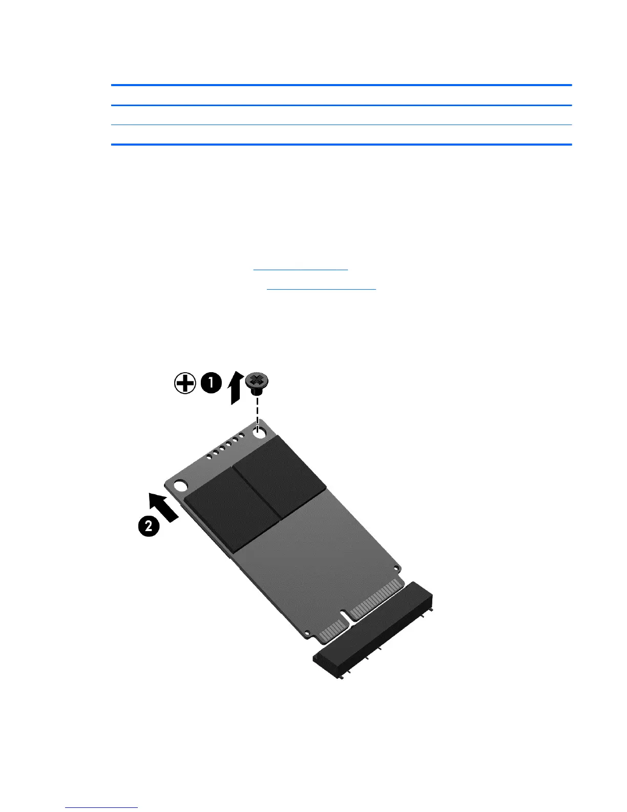 1. Remove the Phillips PM2.0×3.0 screw (1) that secures the solid-state drive to the system board. (The