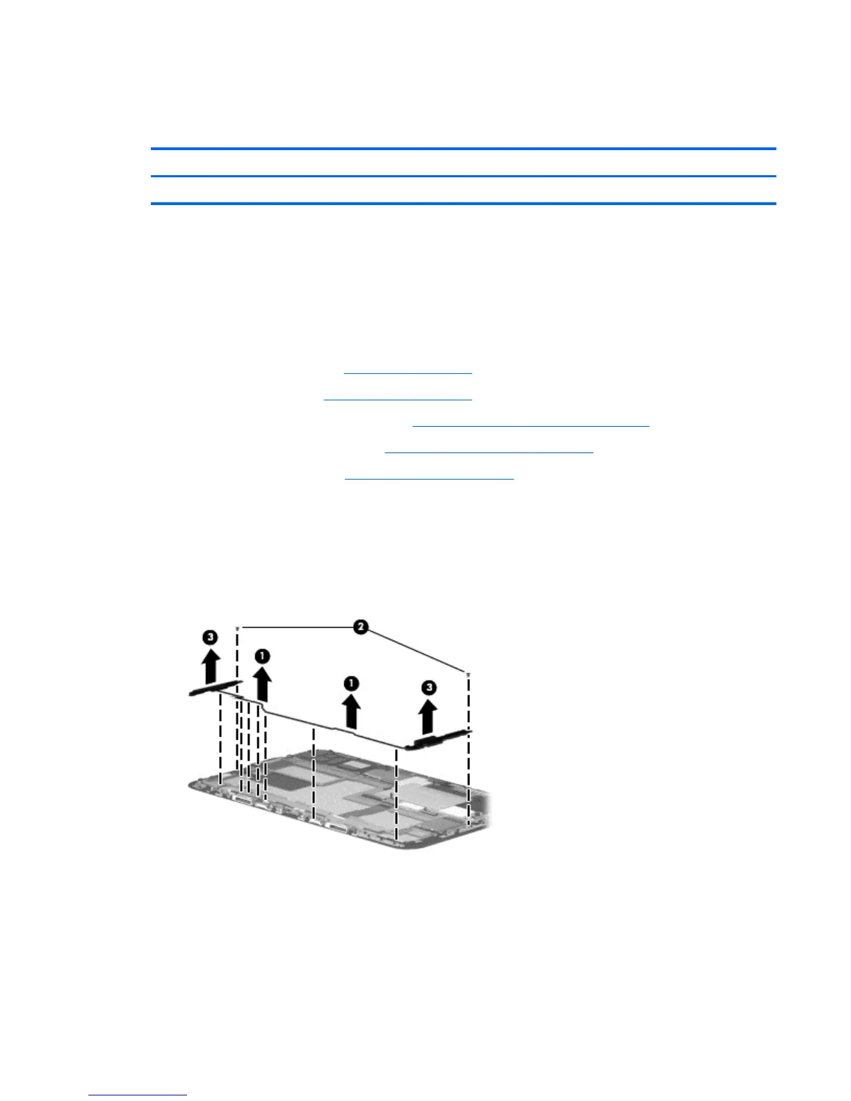1. Release the speaker cables (1) from the retention clips and routing channels built into the