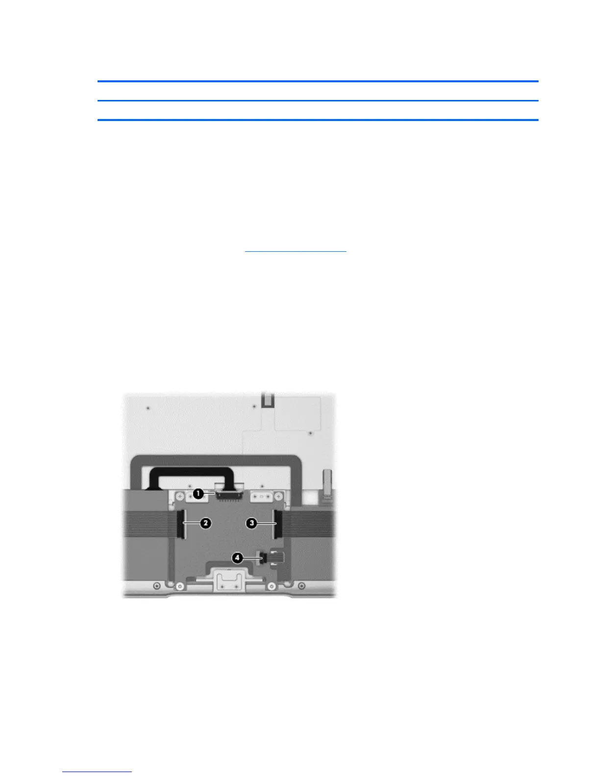 4. Release the ZIF connector (4) to which the TouchPad board cable is attached, and then disconnect the