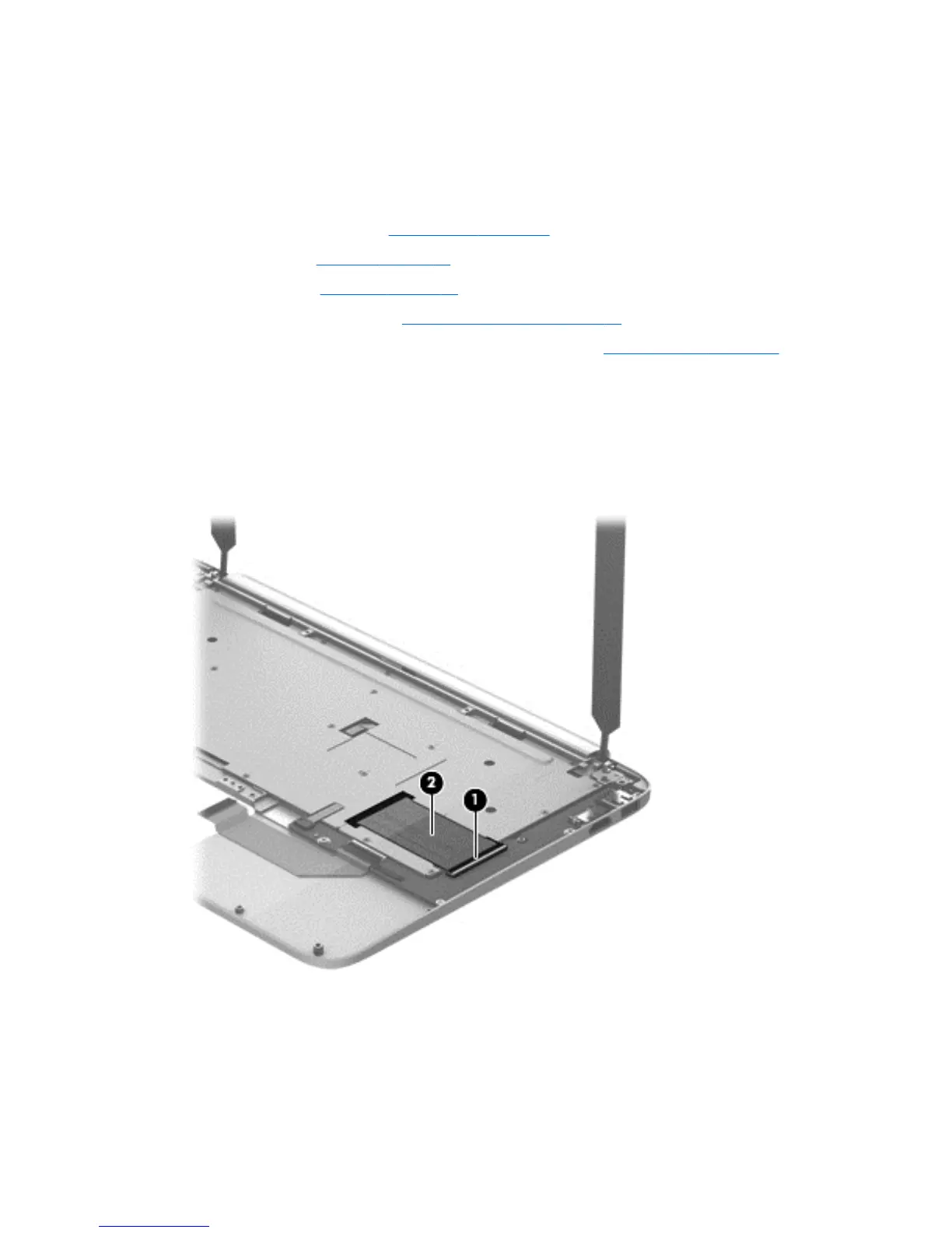5. Detach the hinge assembly cables from the keyboard shield (see