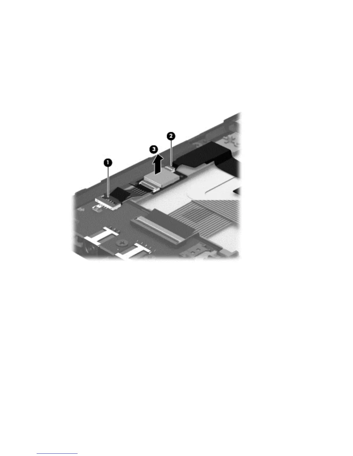 1. Release the audio/power connector board ZIF connector (1) to which the NFC module cable is
