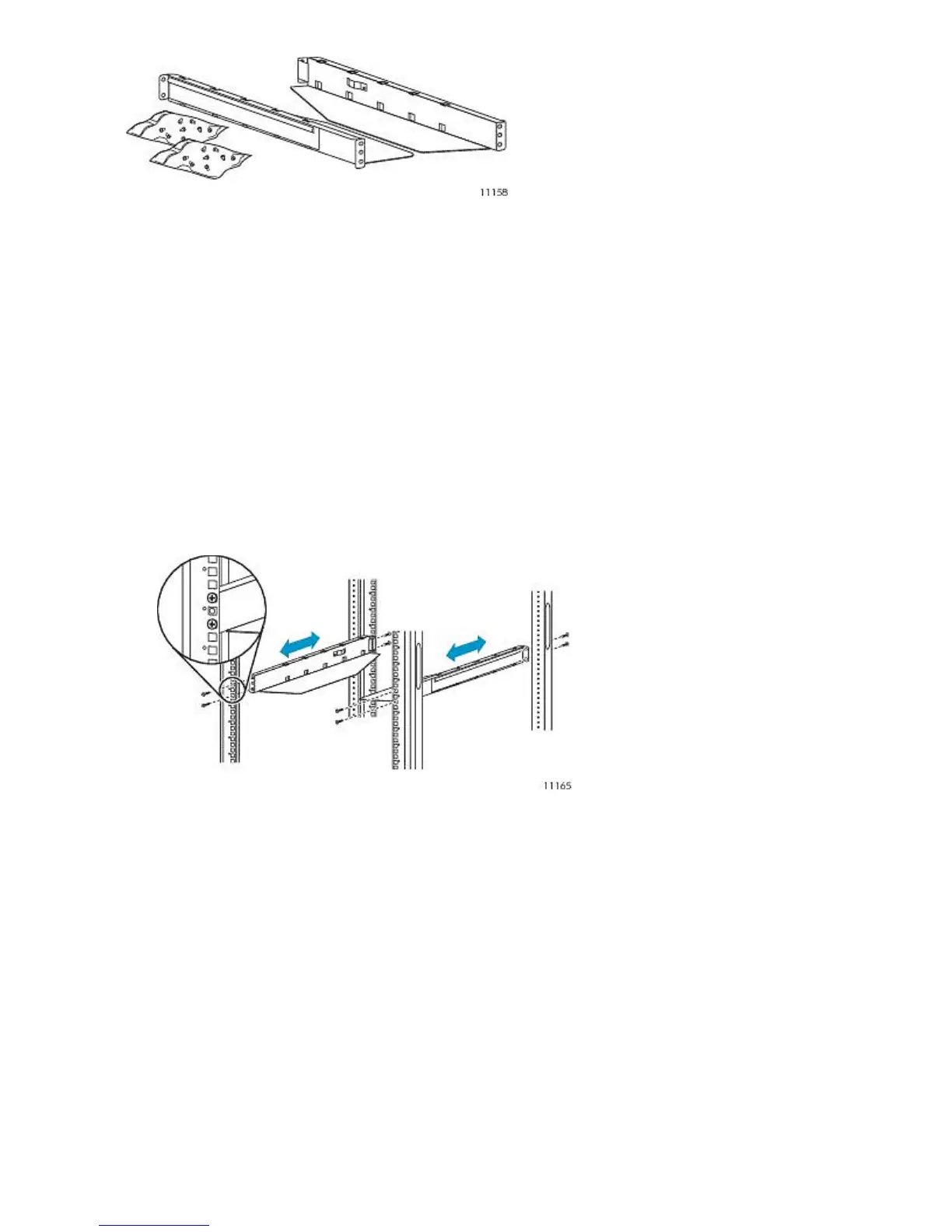 1. Using the screws for your rack type and a #3 Phillips screwdriver, secure one rail to each side