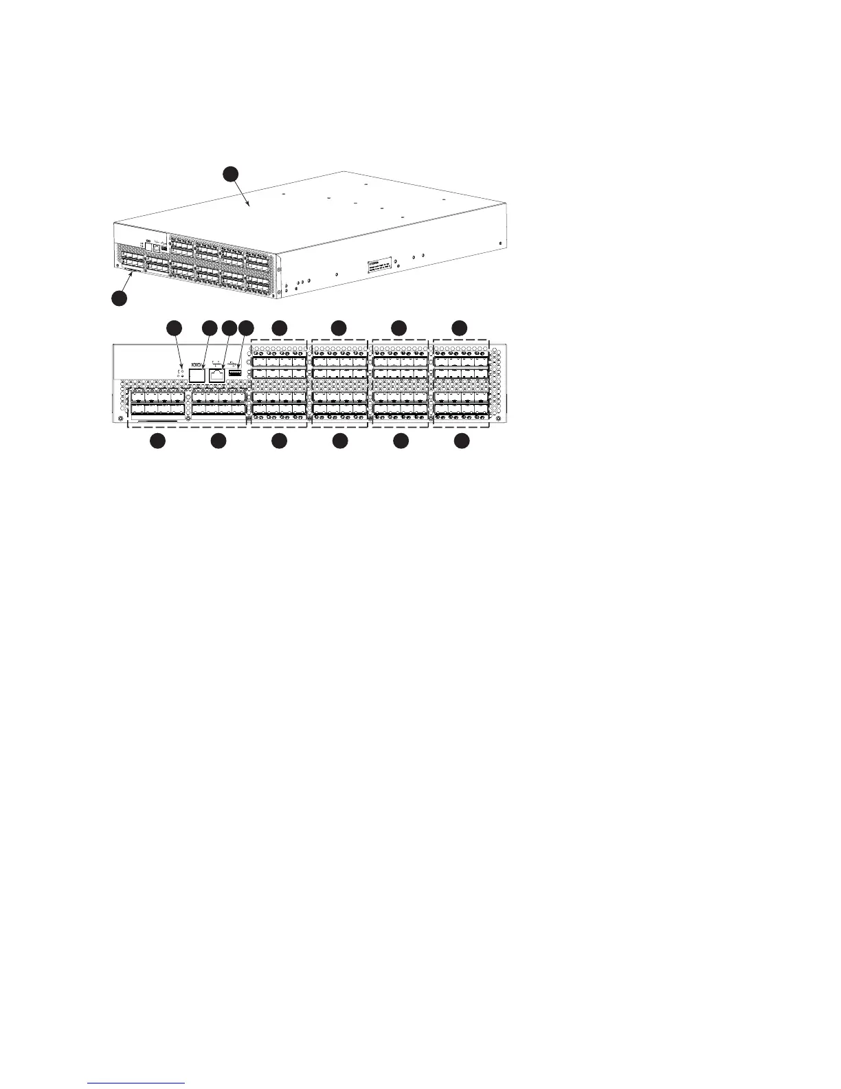 The port side of the 8/80 SAN Switch includes the system status LED, console p ort, Ethernet por t and