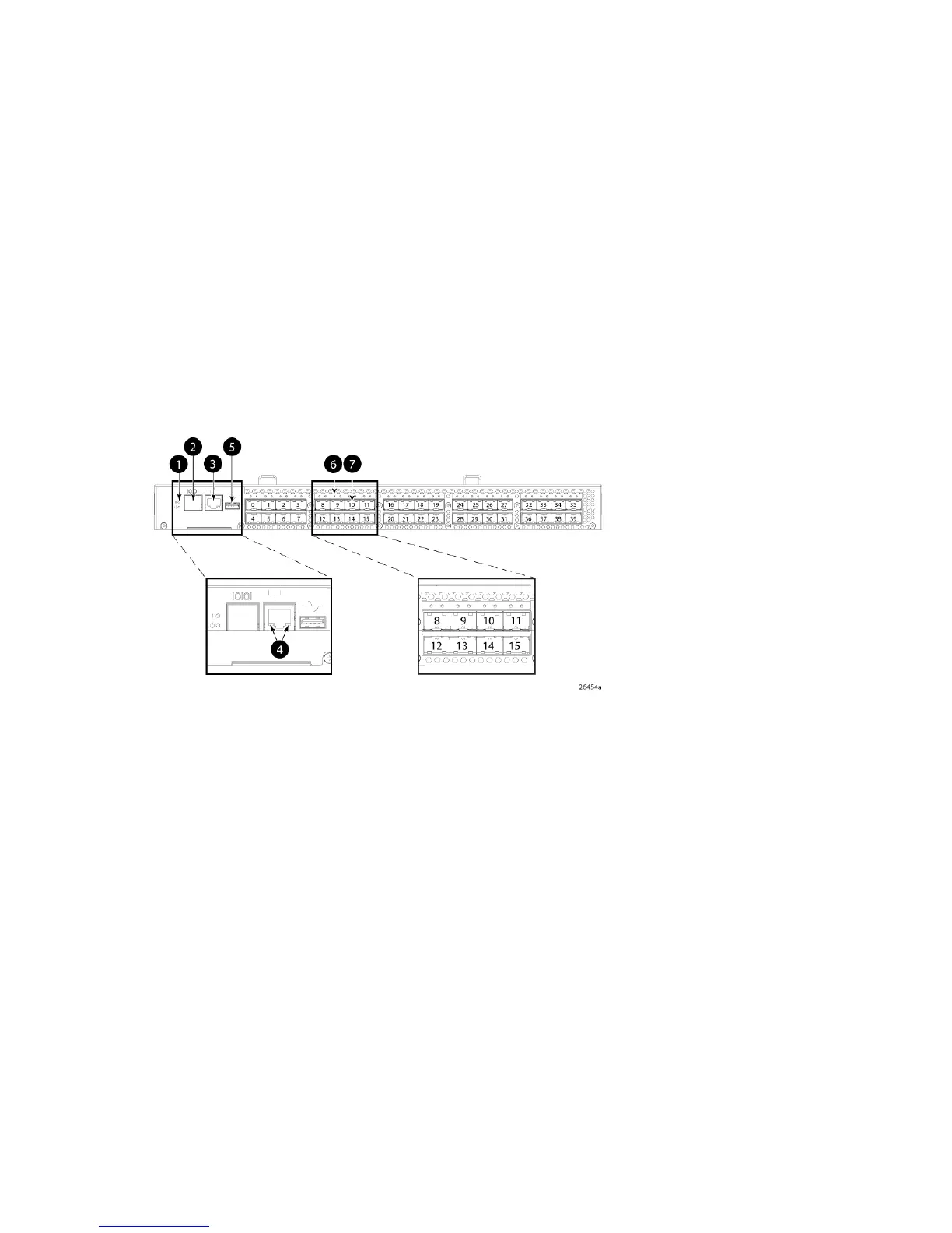 6. Fibre Channel port status LED2. System RS-232 console port (RJ-45)