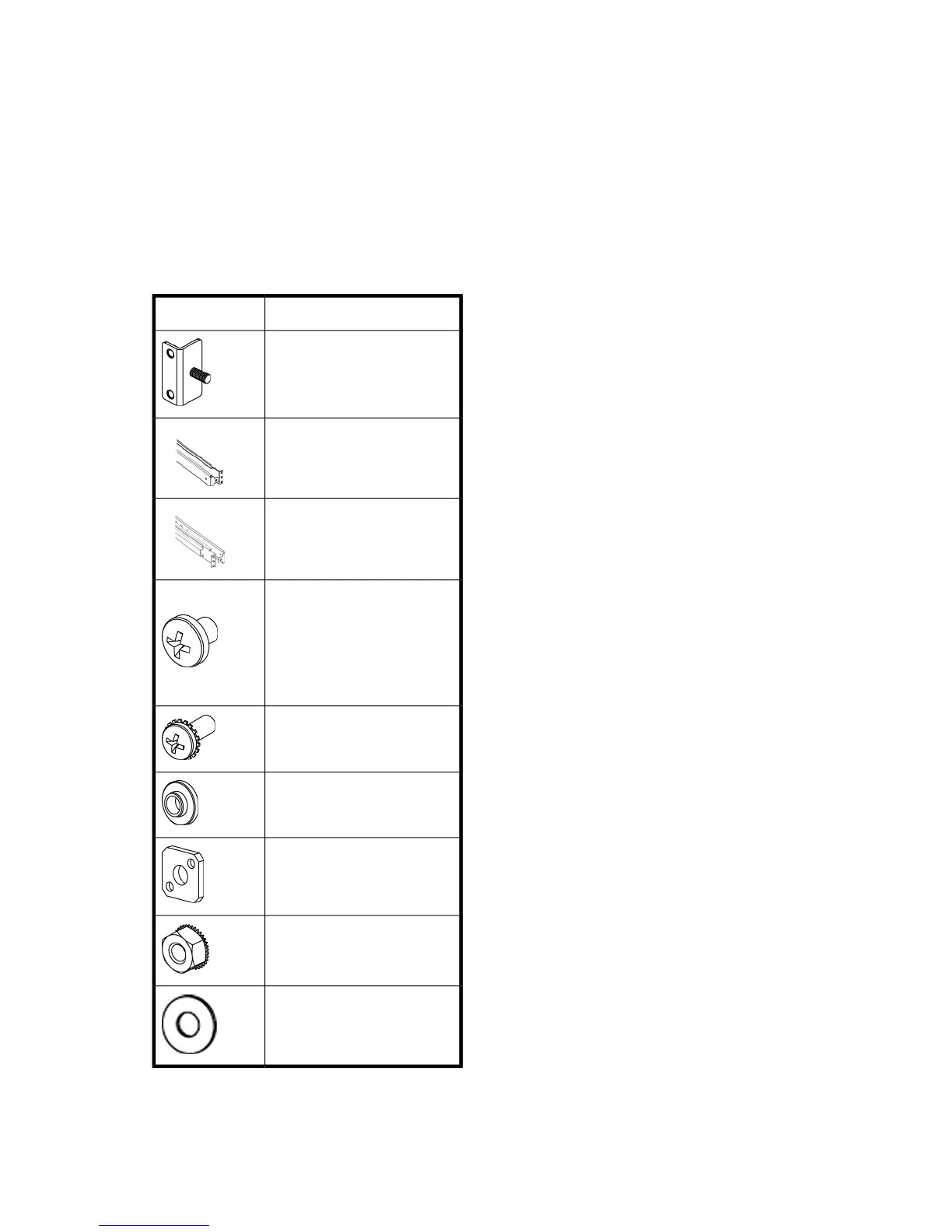 • SAN Switch Rack Mount Kit hardware, shown in Table 9, which identifies rails and rail mounting