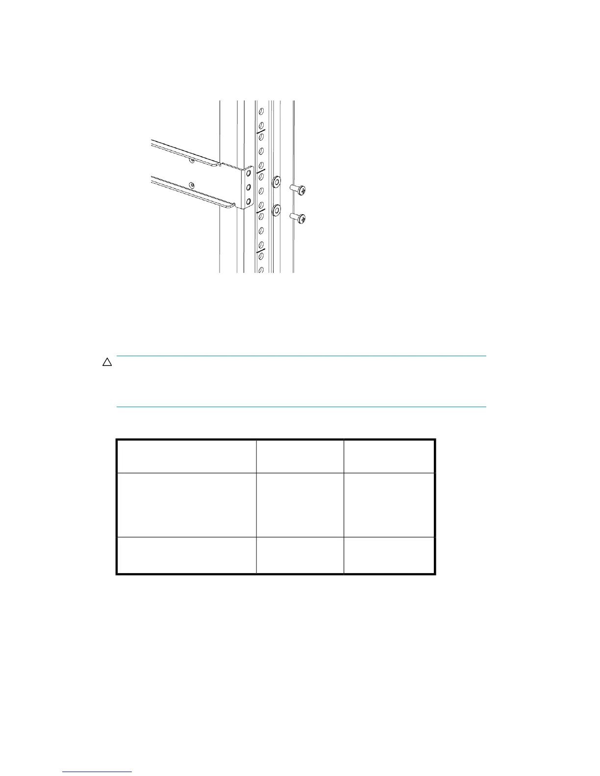 • For an HP System/e Rack, install two #10-32 x 1/2-inch Phillips pan-head screws with