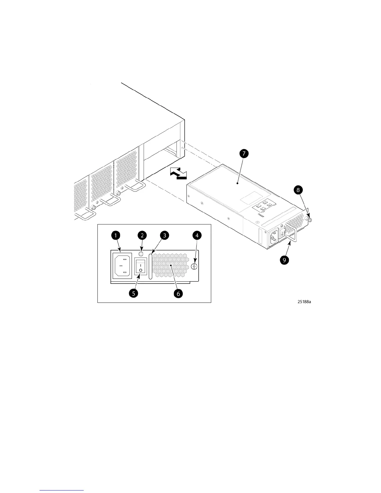Figure 34 Installing a power supply in the 8/80 or Encryption SAN Switch