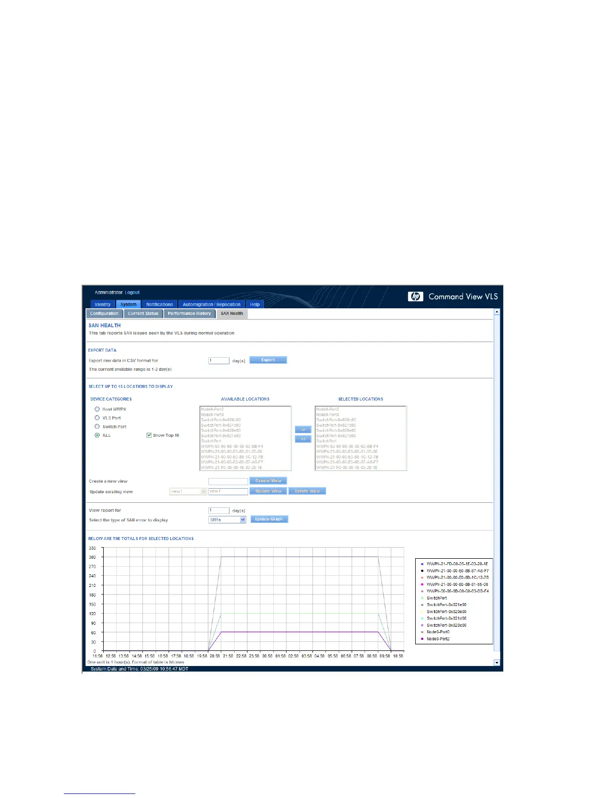 To see the graph for a particular pre-defined view, select it from the Update Existing View list. The