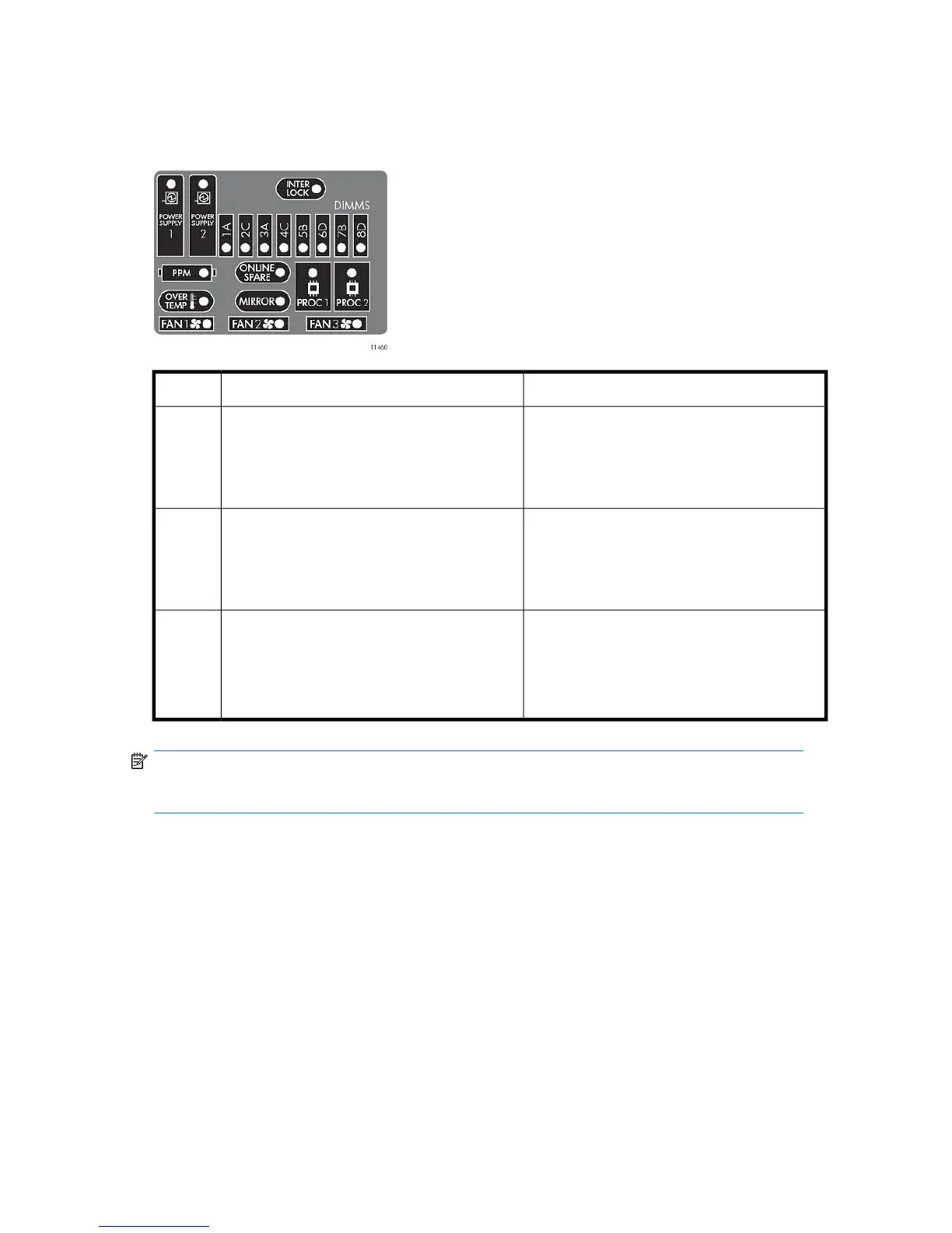 experiencing a health event. Combinations of illuminated system LEDs and the internal health LED