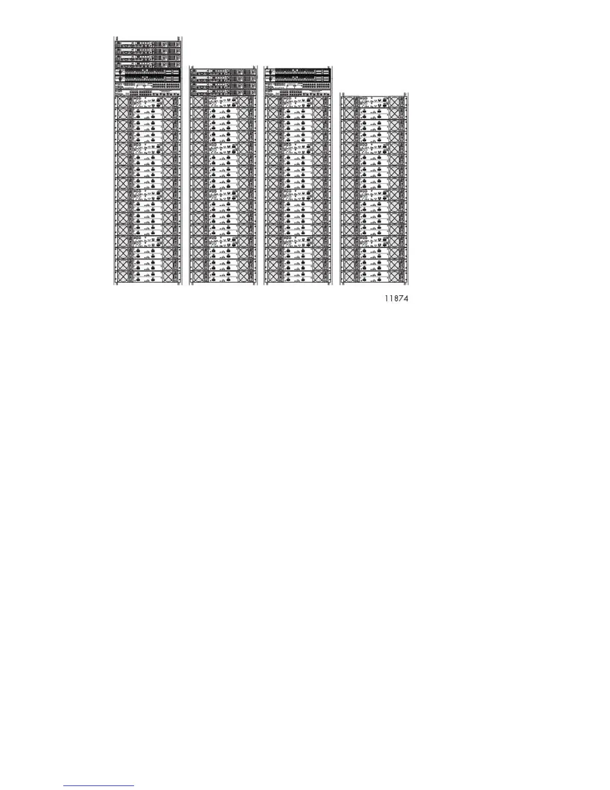 Figure 8 VLS9000–series four-rack configuration, Racks 1–4 (left to right)
