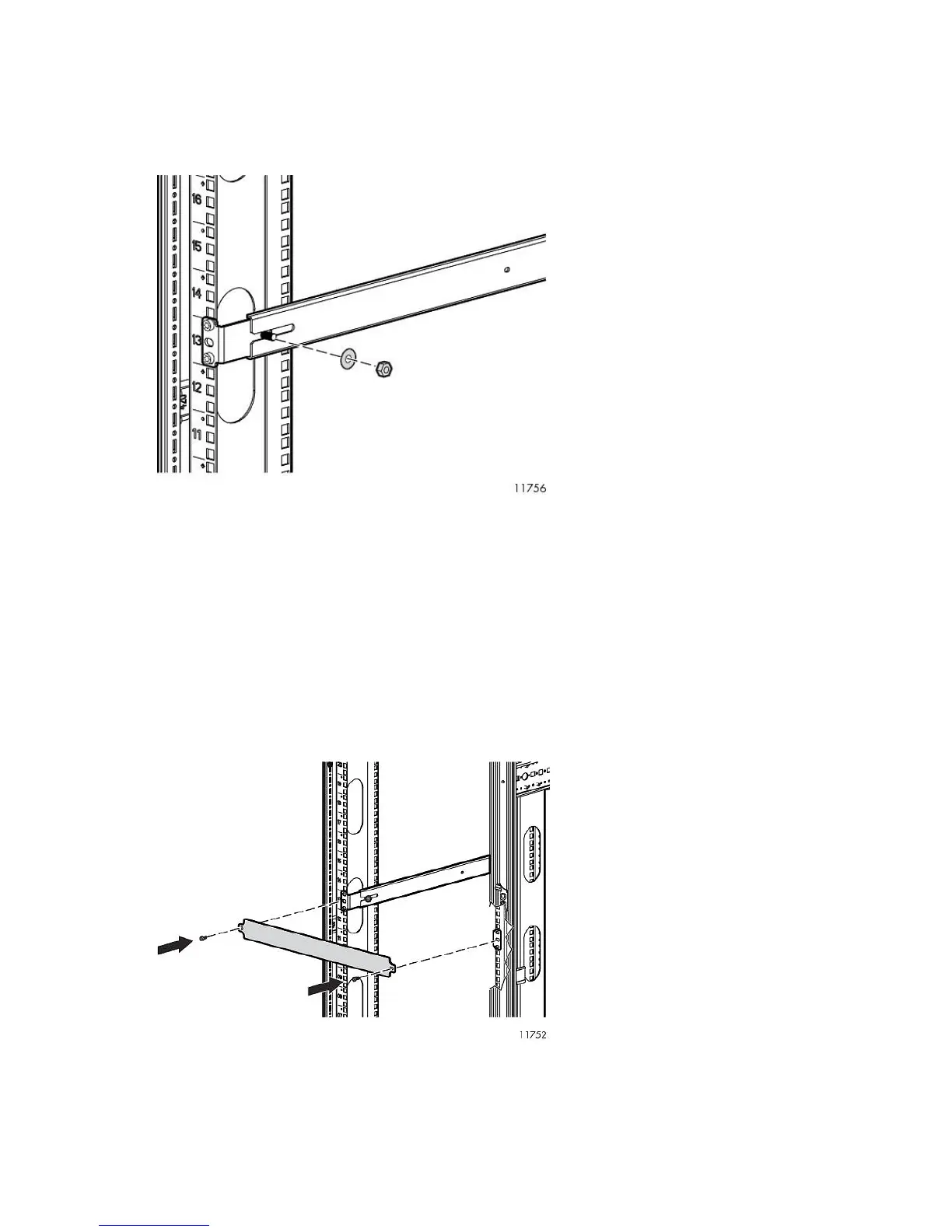 3. Tighten the washer and nut on both sides of the rack to secure the switch rails to the mounting