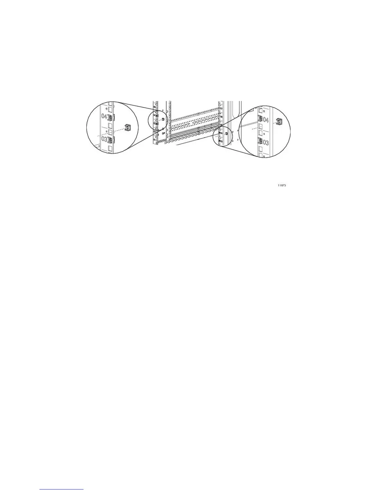 f. On the rear vertical posts, starting at rack positions 3 and 4, install a cage nut in the middle