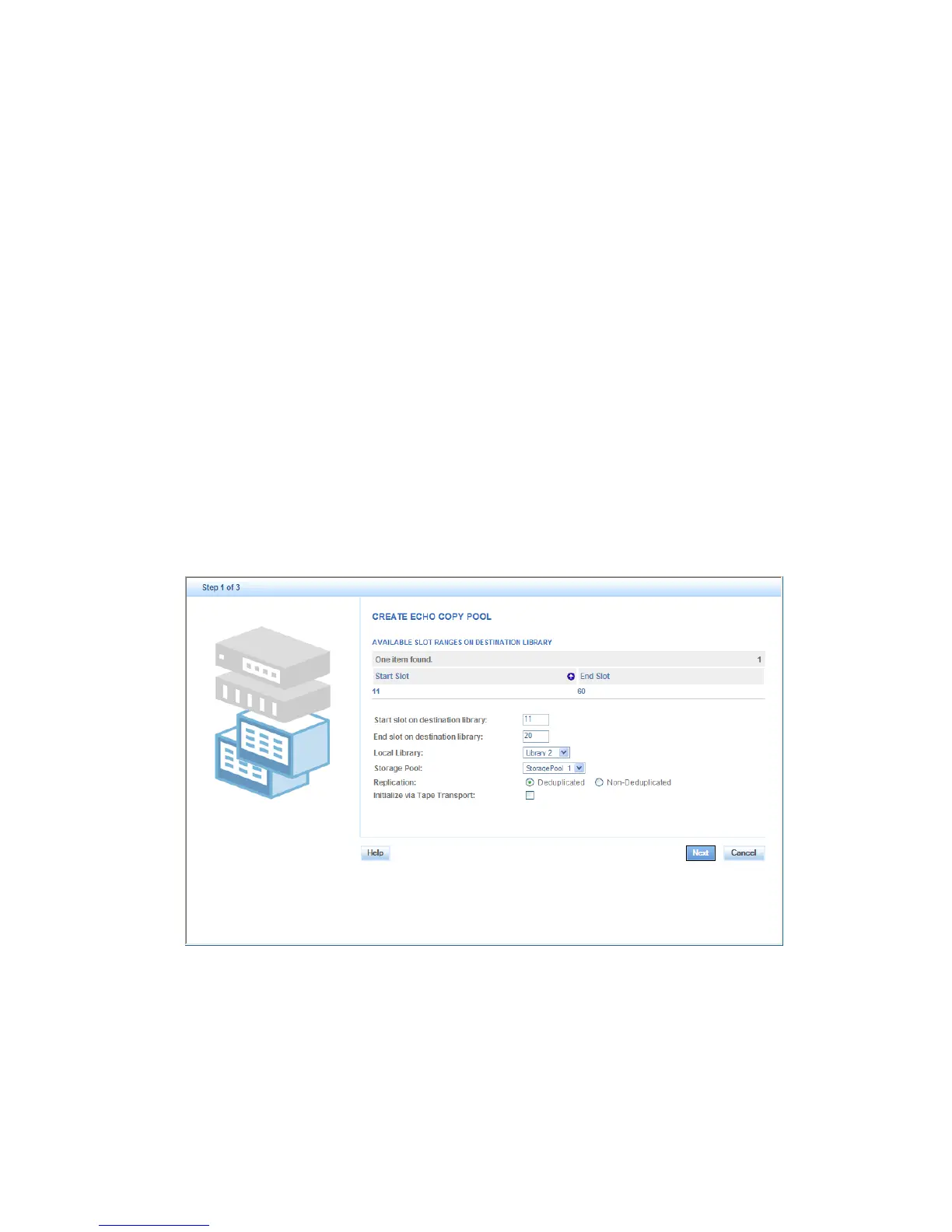 Echo copy pools are created from physical library slots after a destination tape library is added to