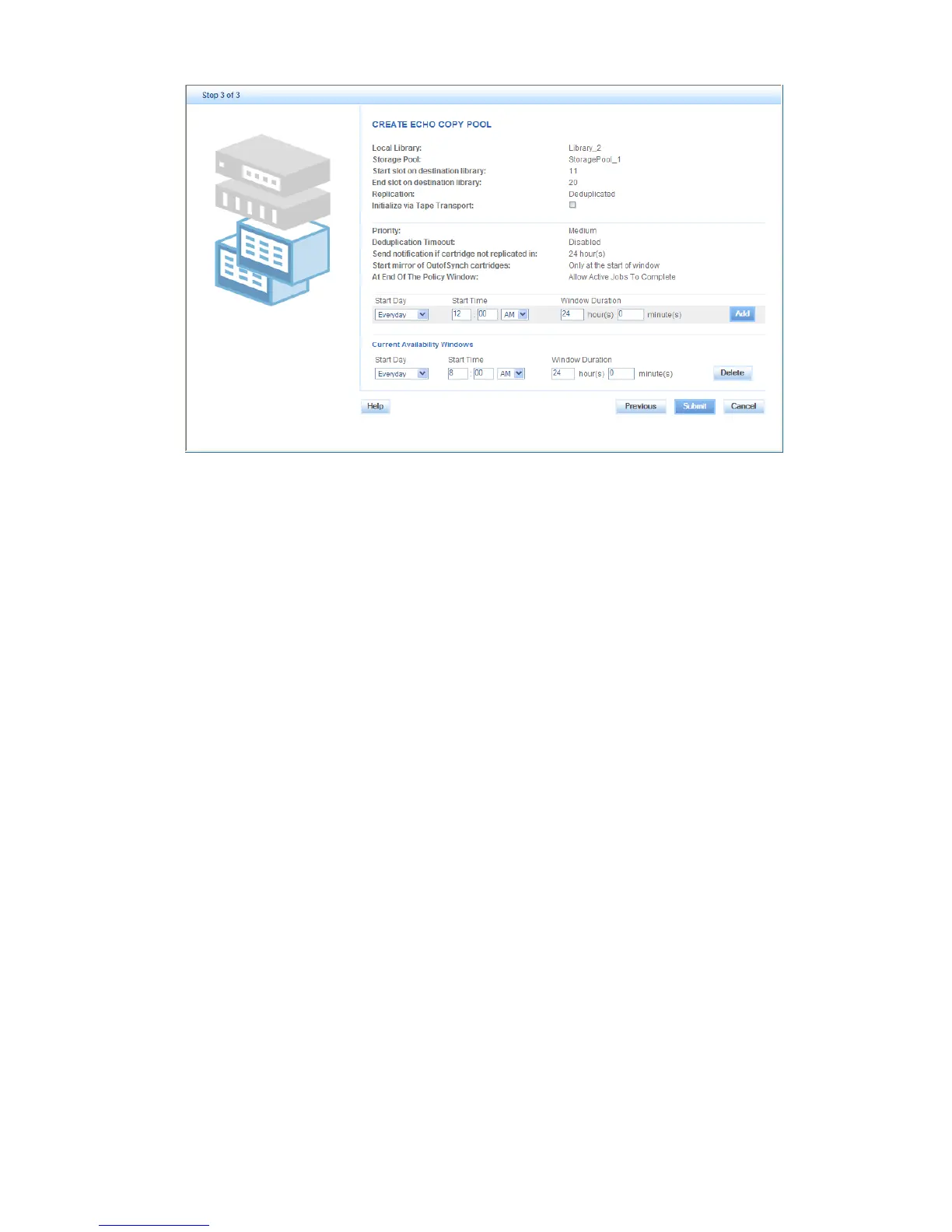 • Window Duration – the number of hours available during which the echo copy job can take
