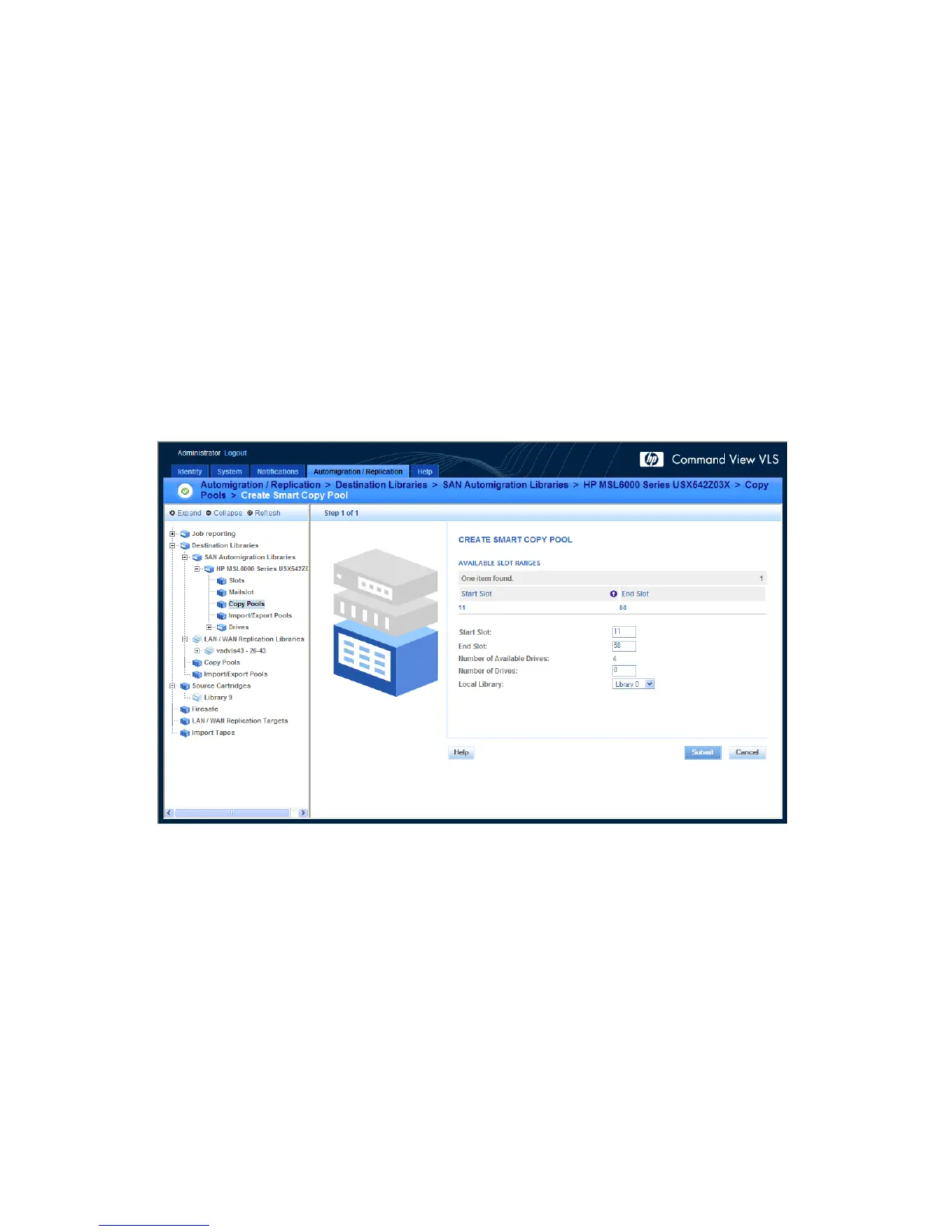 Smart copy pools are created from physical library slots after a destination tape library is added to