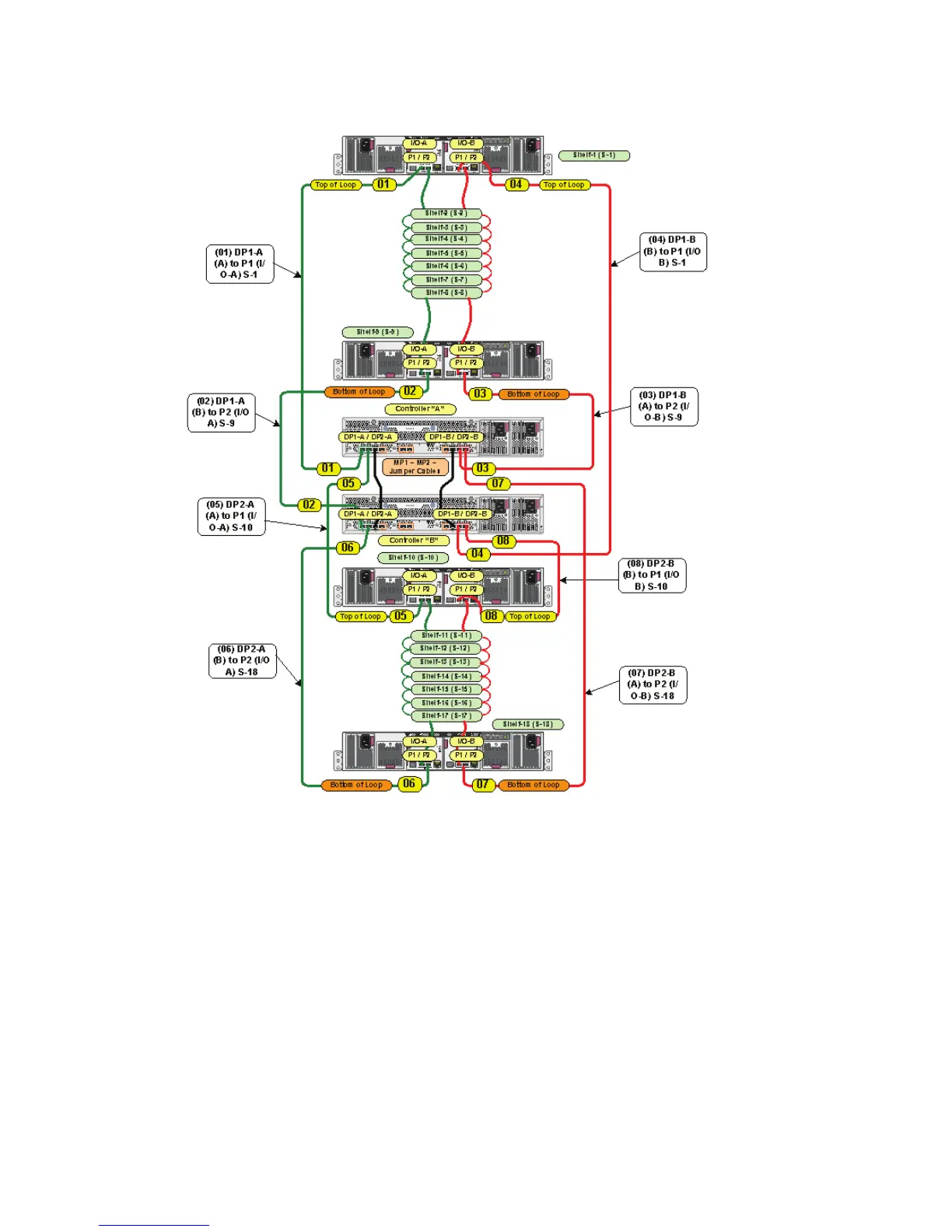 Figure 21 shows a fully cabled EVA6400 system with 2 controllers and 18 disk enclosures (2C18D).