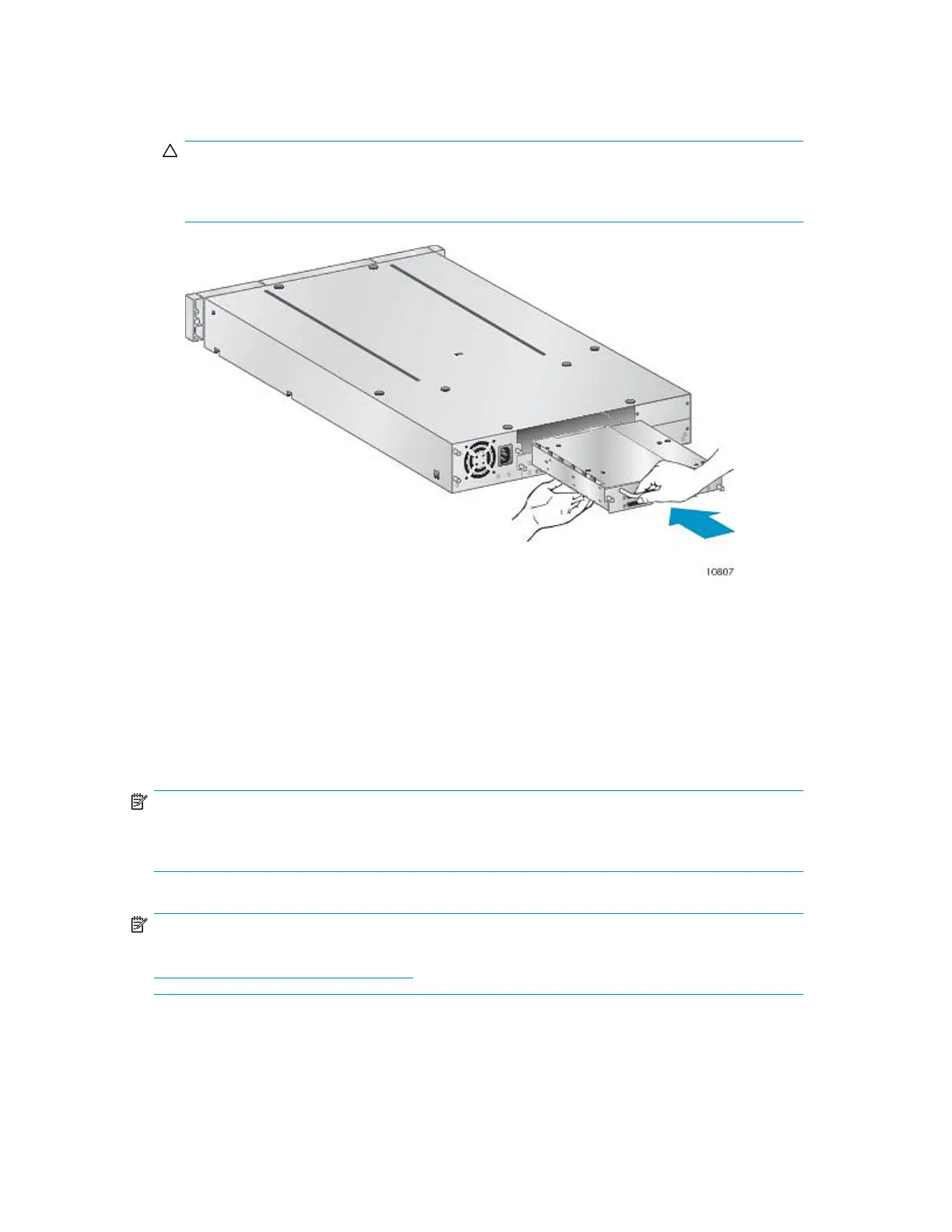 2. Slowly insert the new tape drive into the drive bay, and align the connectors on the Library while