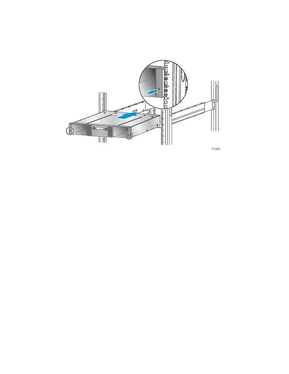 a. With assistance, slide the Library onto the metal rails that are already in position in the rack.