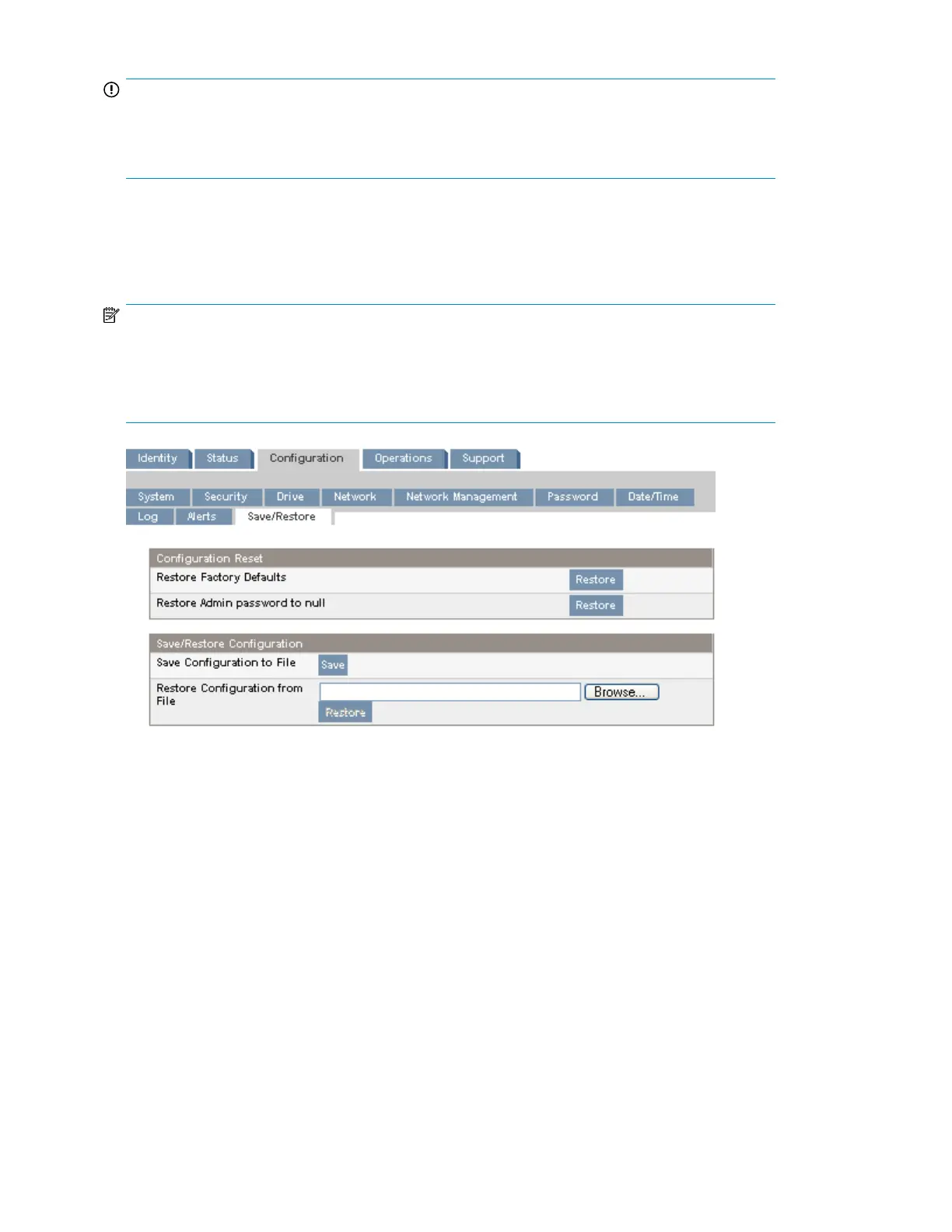 Figure 67 Configuration: Save/Restore page