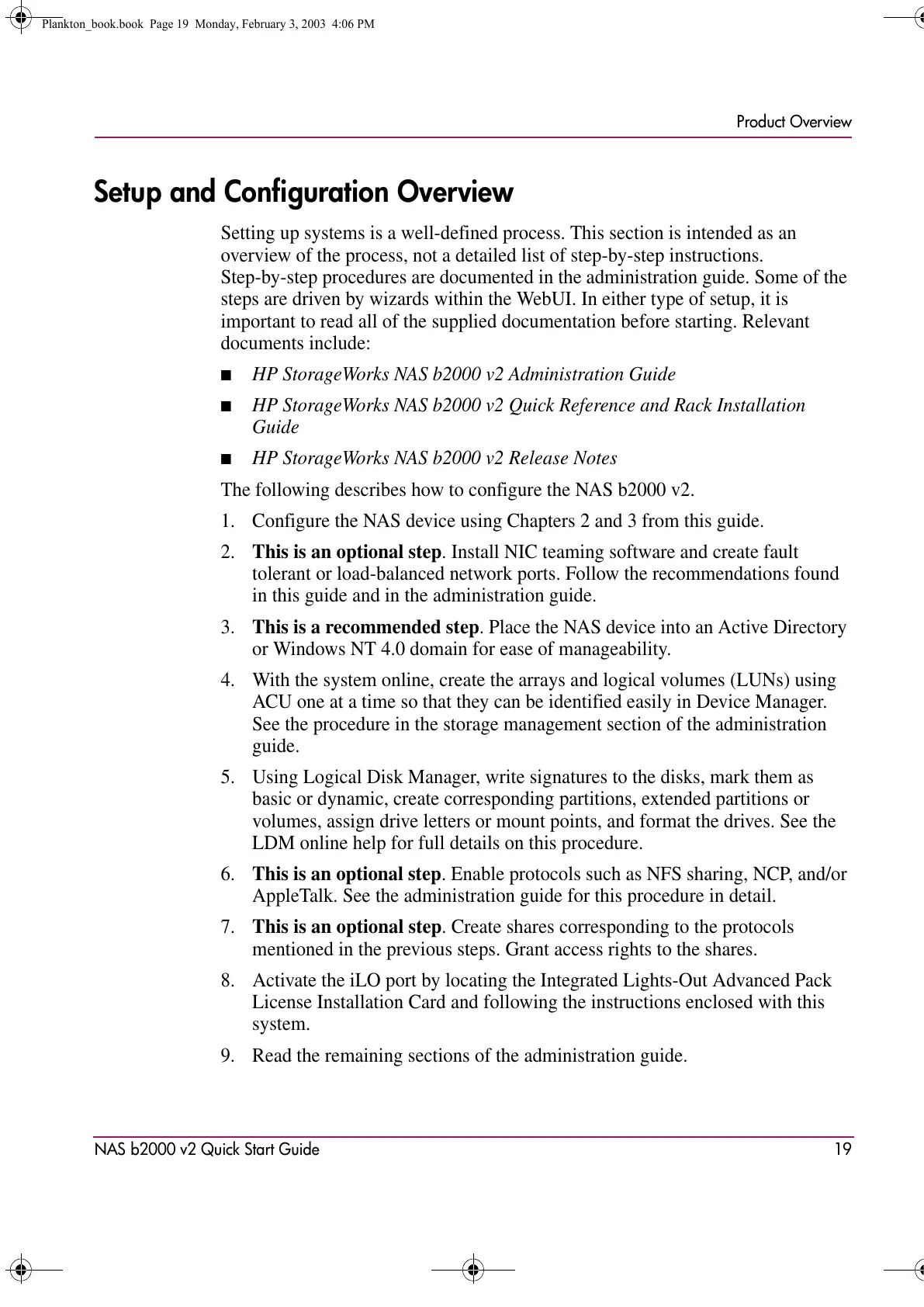 ■ HP StorageWorks NAS b2000 v2 Quick Reference and Rack Installation