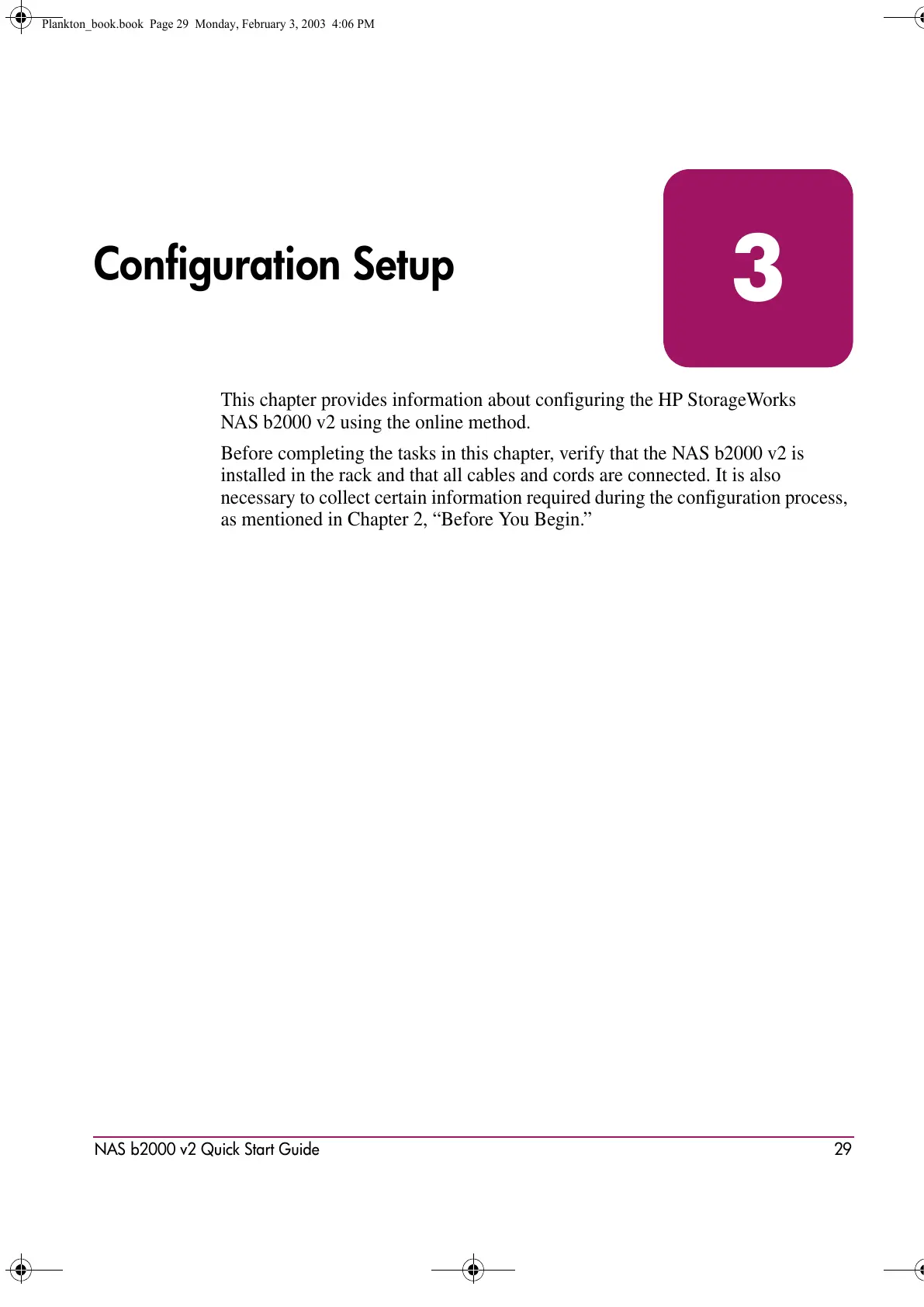 Before completing the tasks in this chapter, verify that the NAS b2000 v2 is