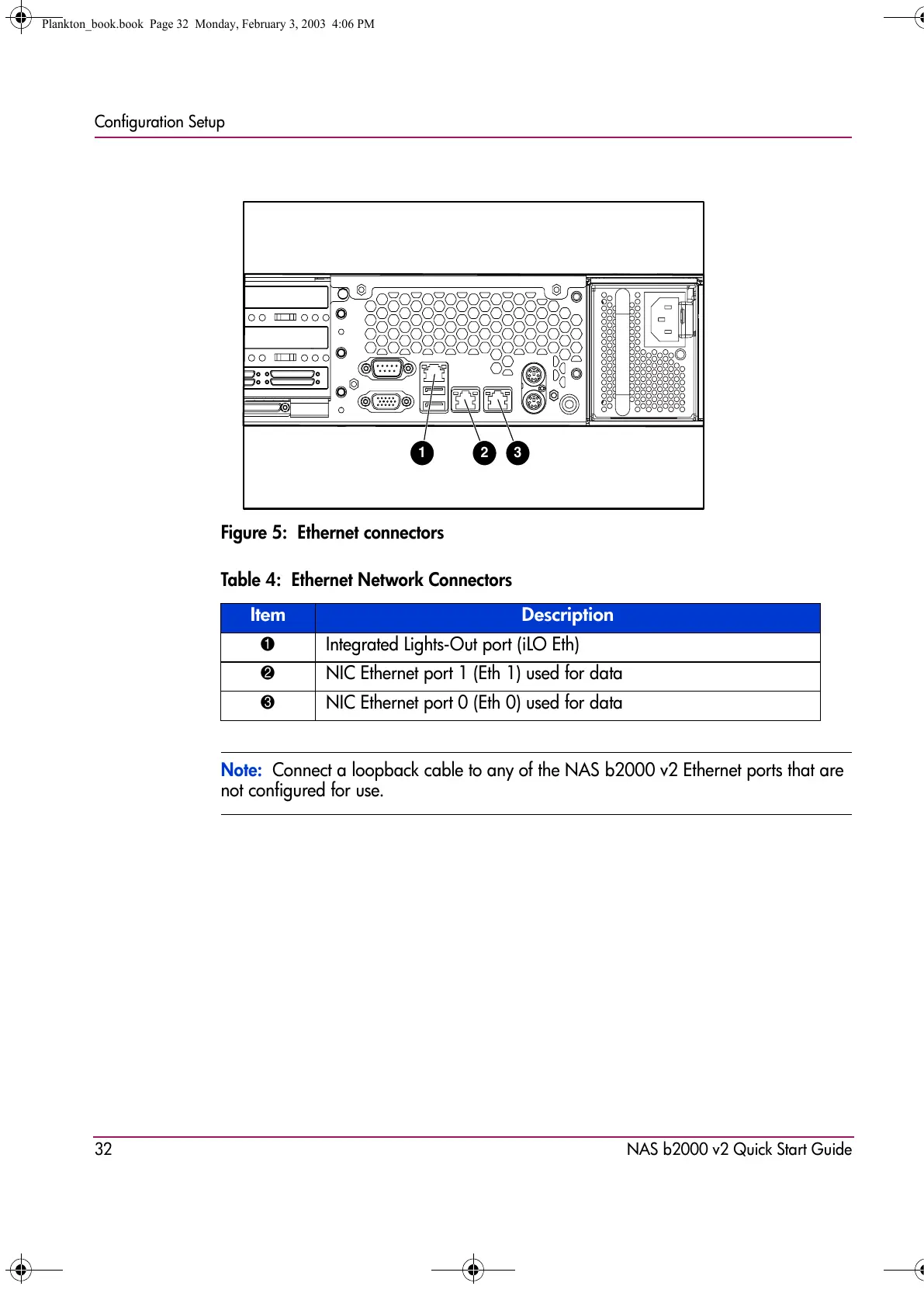 Note: Connect a loopback cable to any of the NAS b2000 v2 Ethernet ports that are