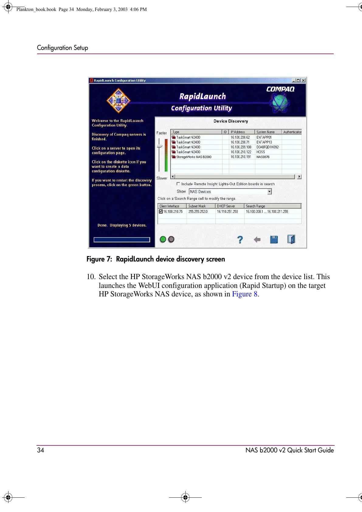 10. Select the HP StorageWorks NAS b2000 v2 device from the device list. This