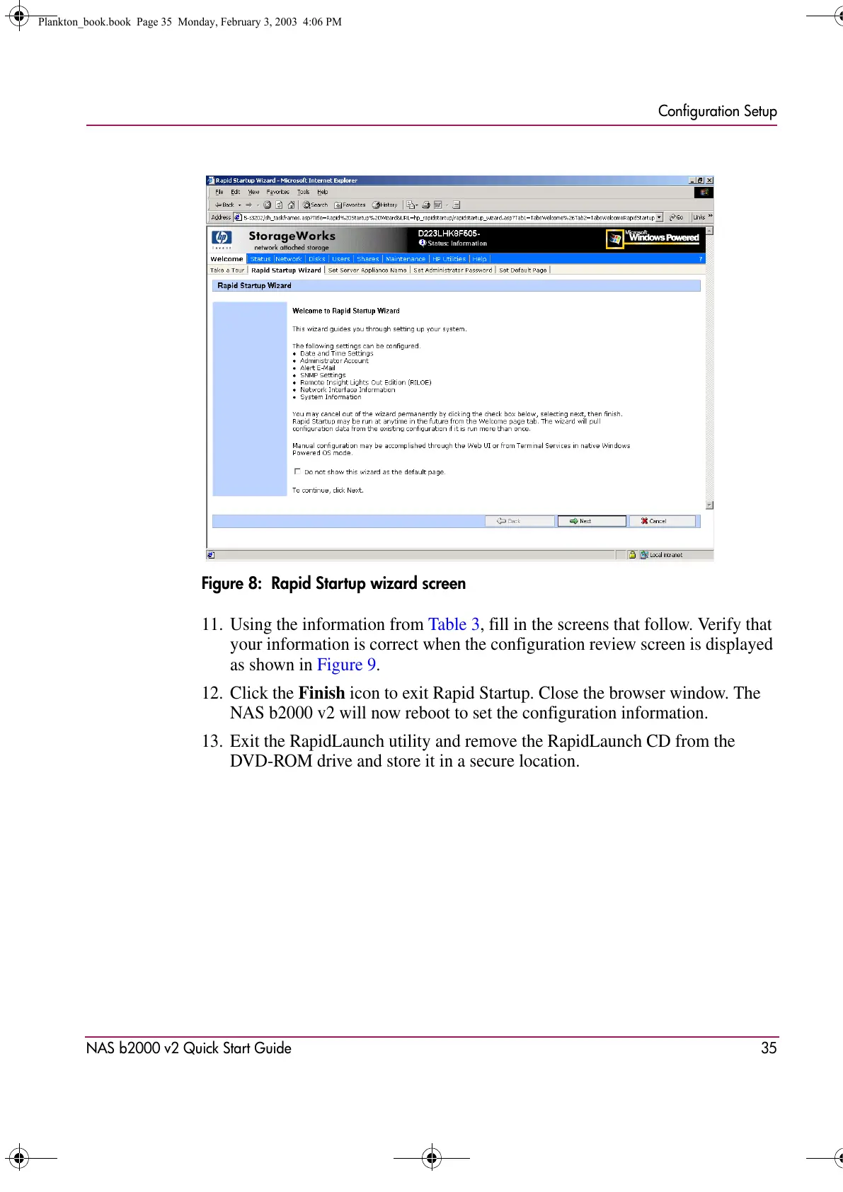 12. Click the Finish icon to exit Rapid Startup. Close the browser window. The