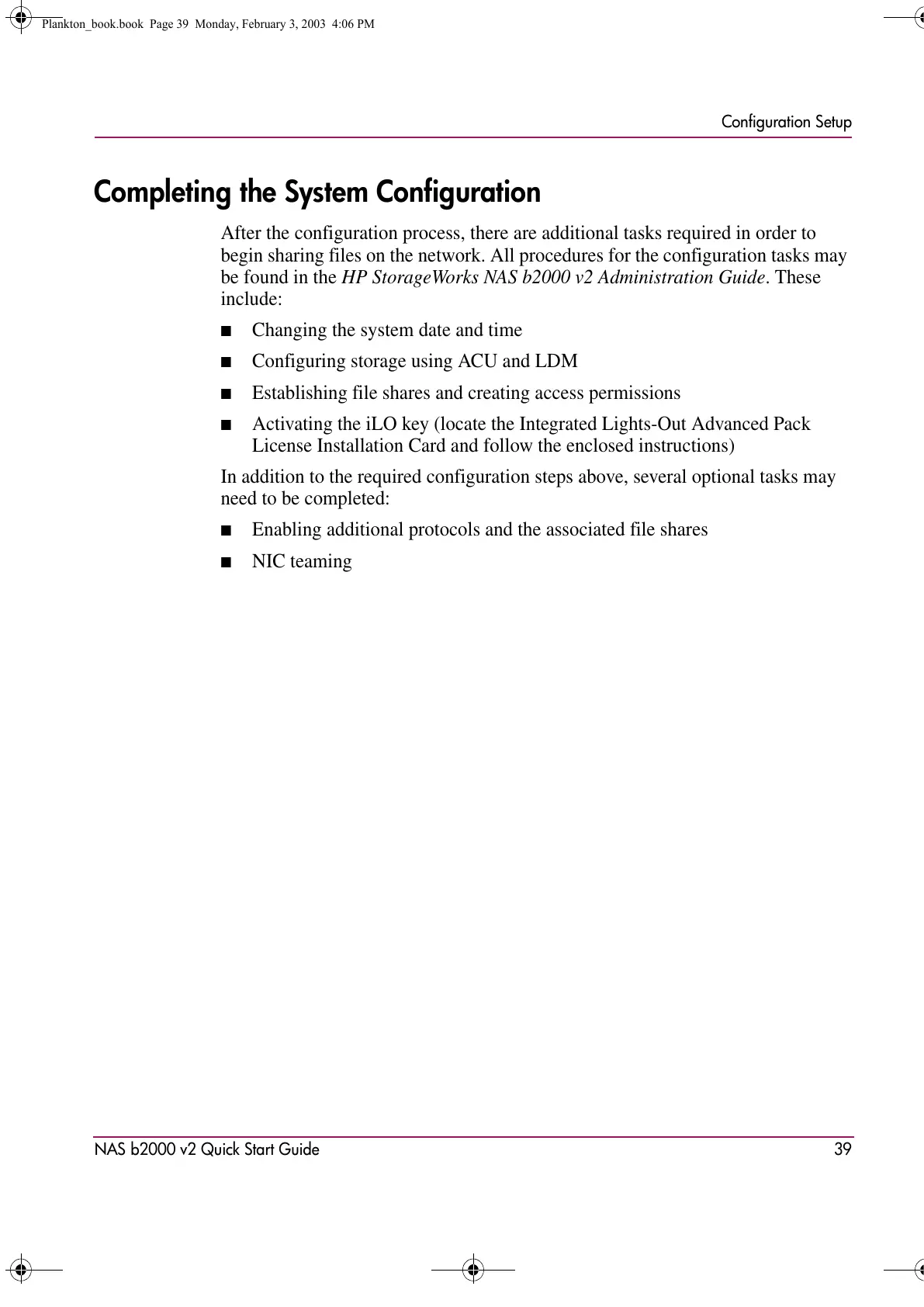 be found in the HP StorageWorks NAS b2000 v2 Administration Guide. These