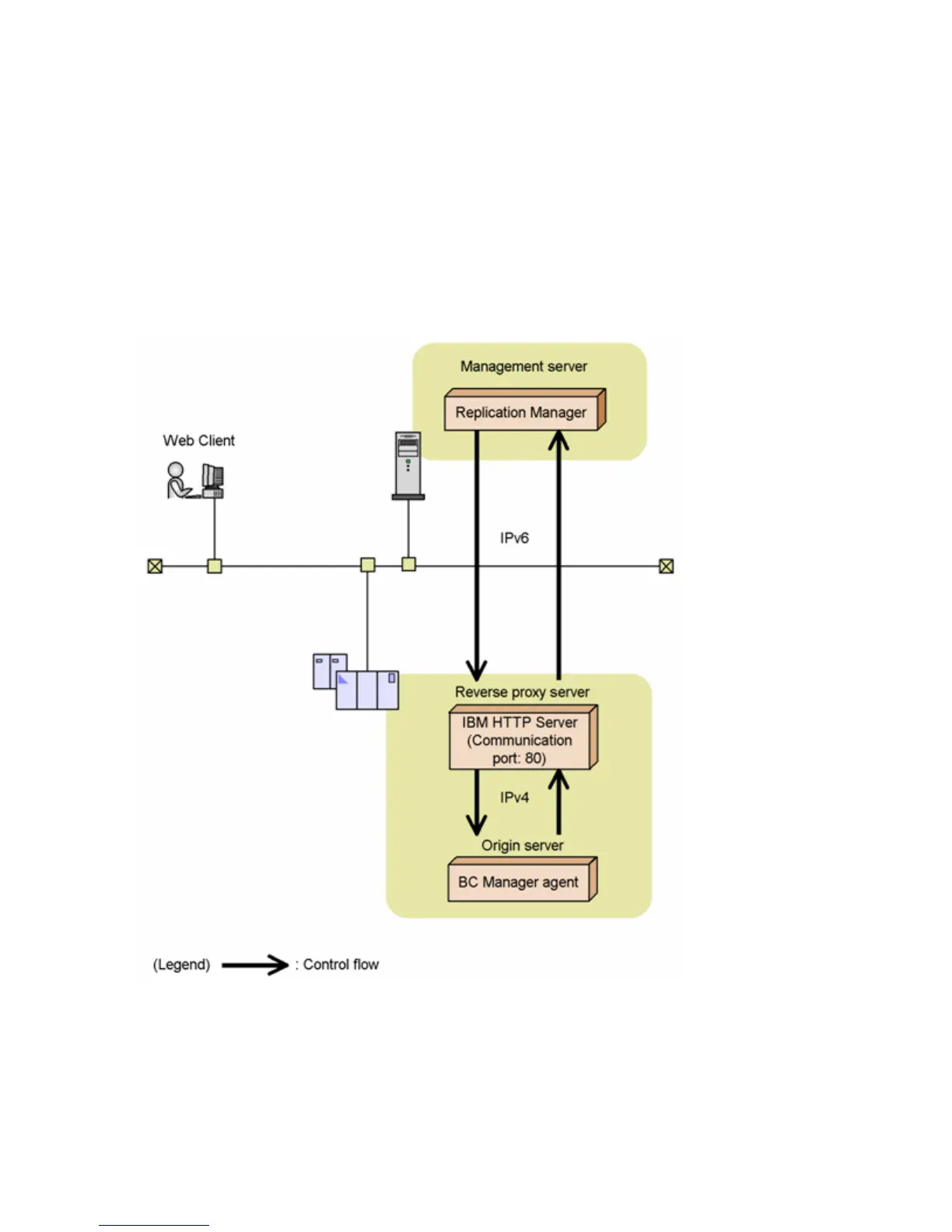 Figure 8 Example Configuration When Using IPv6 to Connect P9000 Replication Manager to the