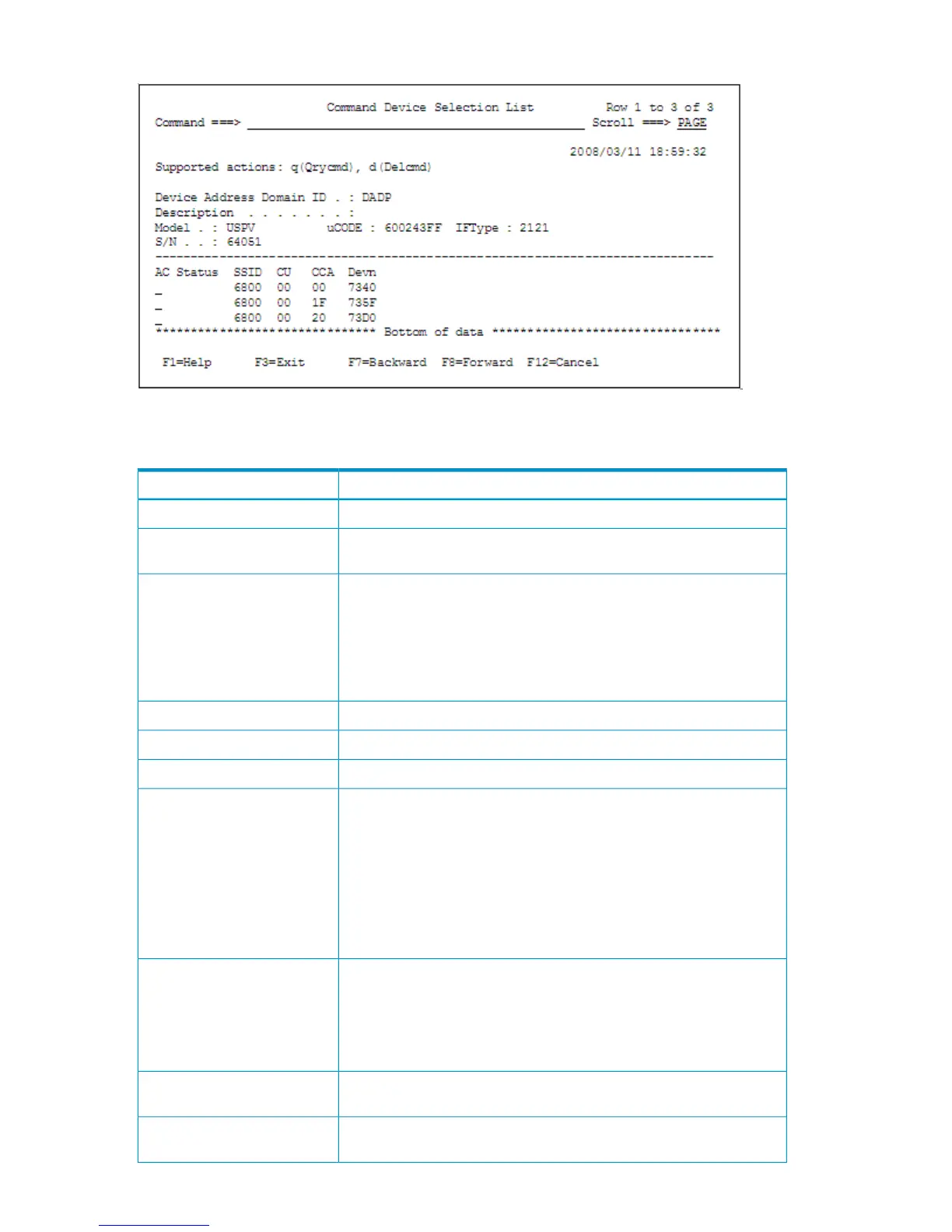 Table 69 (page 108) describes the items in the Command Device Selection List panel.