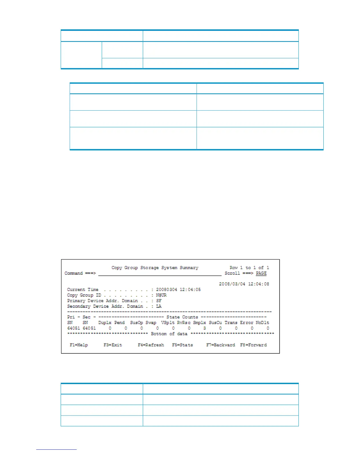 When the F5=Storage key is pressed in the Copy Group Storage System Summary panel, the Copy