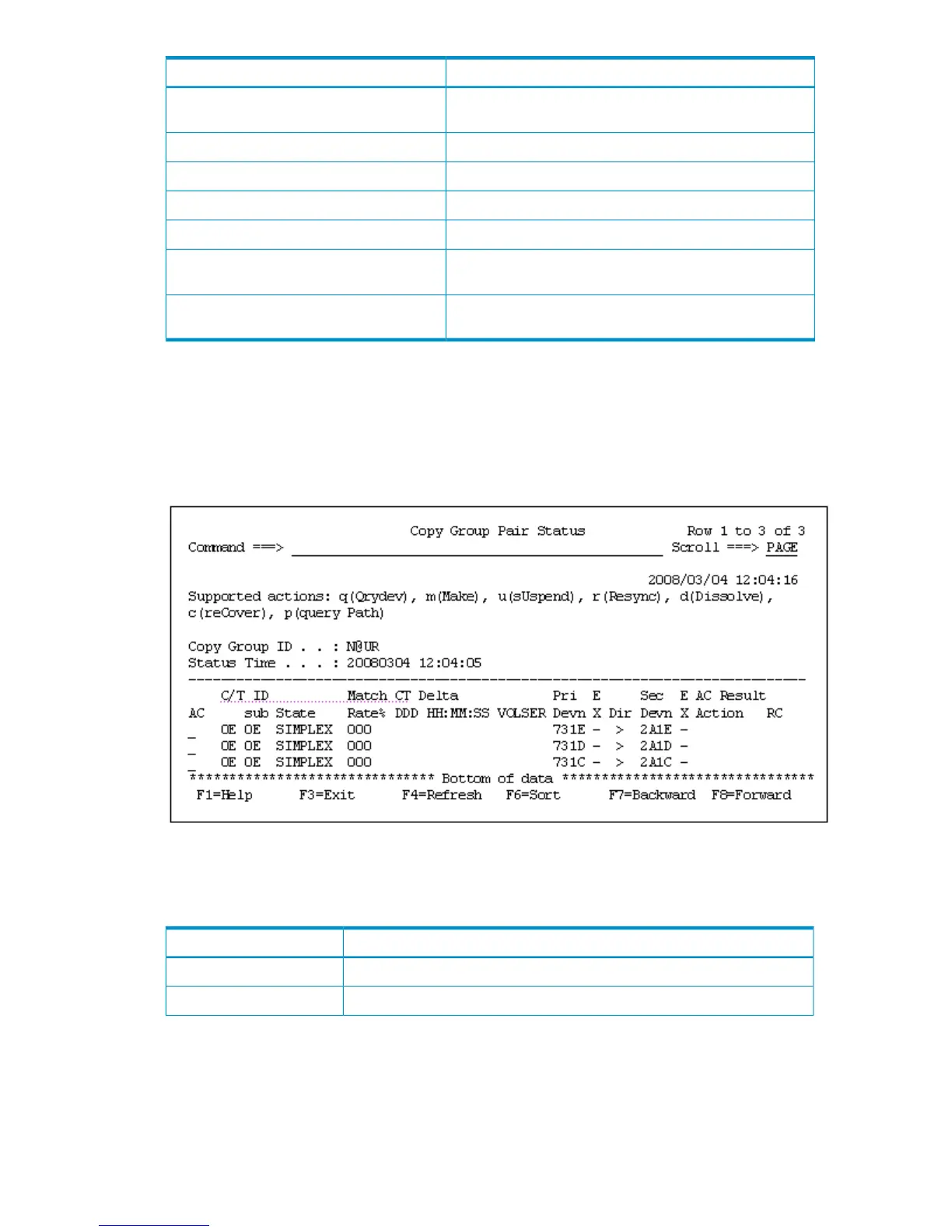 The status of each copy pair is displayed when the F6=Pairs key is pressed in the Copy Group