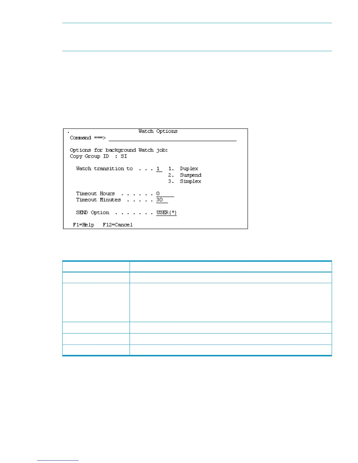 1 The sum total of the values specified in Timeout Hours and Timeout Minutes is specified for the TIMEOUT parameter