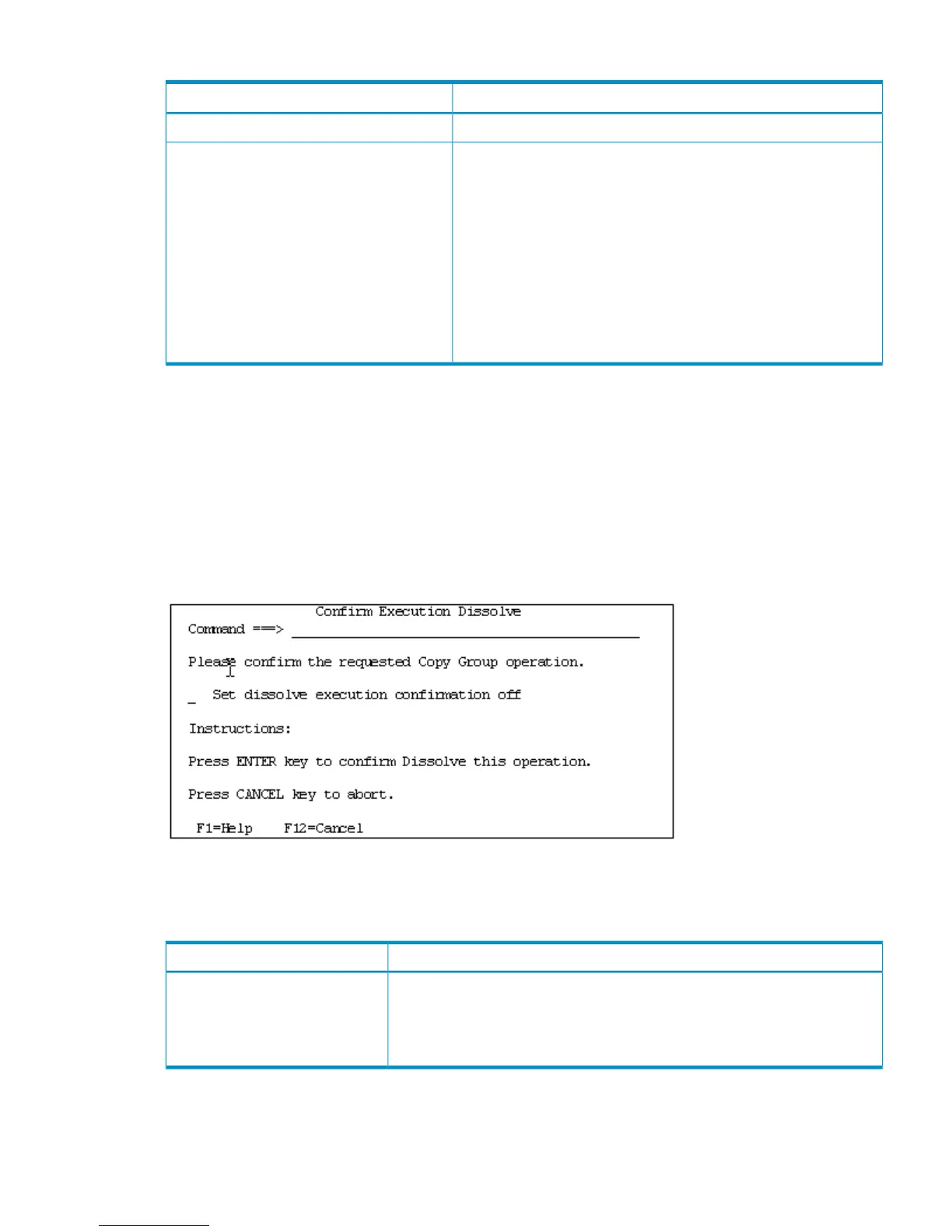 If d is specified in AC in the Manage Copy Groups panel, the Confirm Execution Dissolve panel